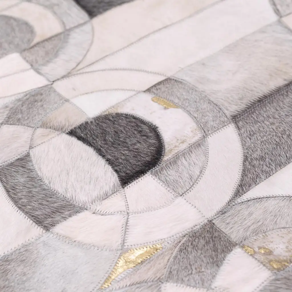 Decadent New Customizable Curvo Gray And Gold Cowhide Area Floor Rug X-Large