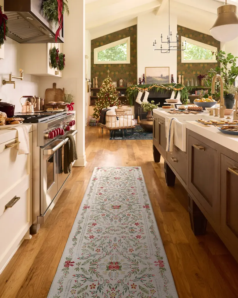 Bring the holiday cheer home. The Deck The Halls Cream Multicolor Rug wraps your space in classic seasonal vibes with a fresh twist. Starting with a creamy base that gently darkens at the edges, it’s decorated with sprigs of green and sage fir, holly berries, and bright red bows—plus little pops of golden yellow that catch the eye. Water-resistant, stain-resistant, and machine-washable. Colors may vary by device and lighting.