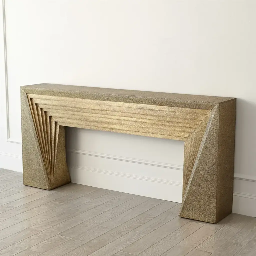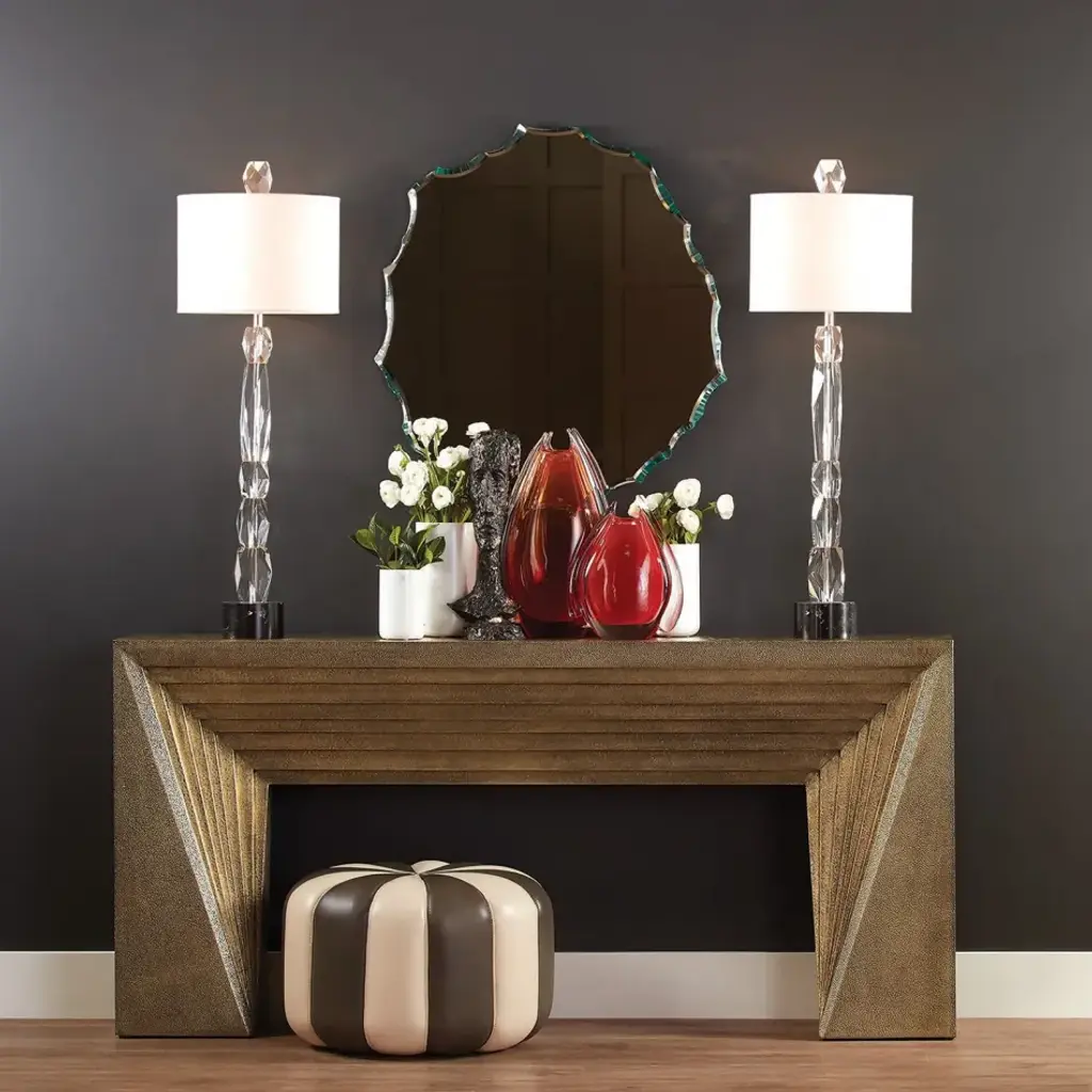 The Deco Console is handcrafted in hardwood with hand-applied and textured brass sheeting finished with antique wash. From a fashion forward perspective, Global Views offers accessories, furniture, statement lighting, and an assortment of rugs and mirrors to add beauty and joy to your home.