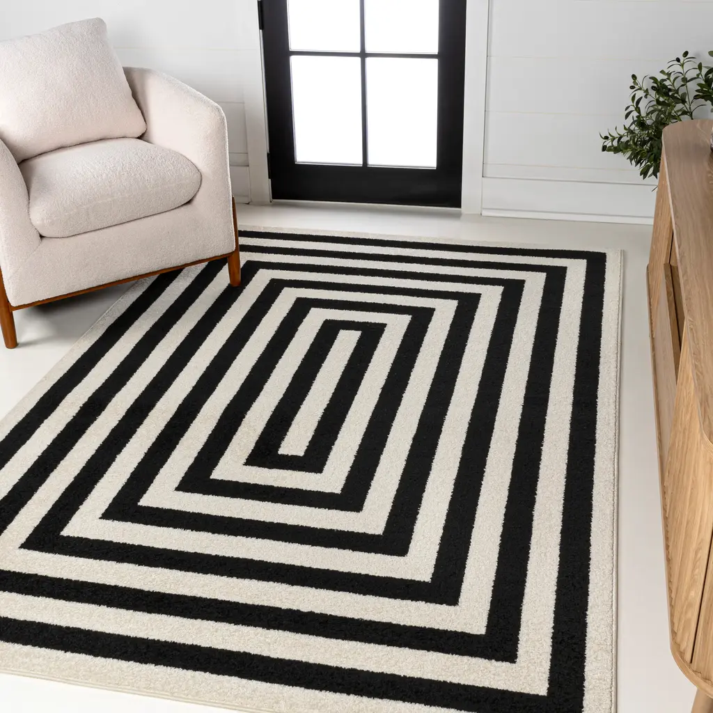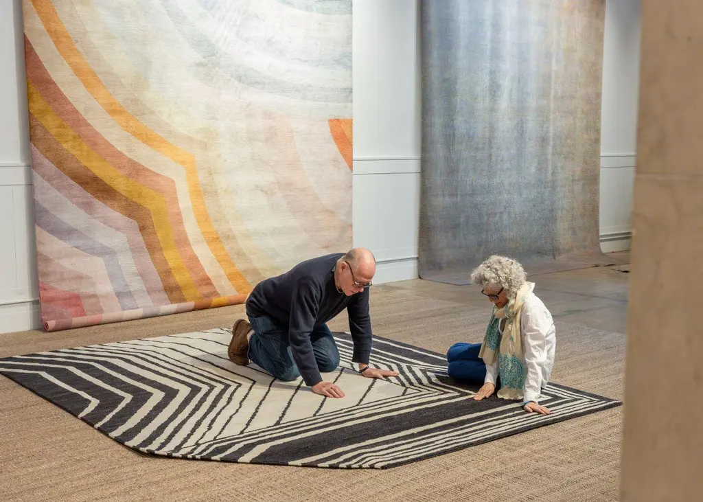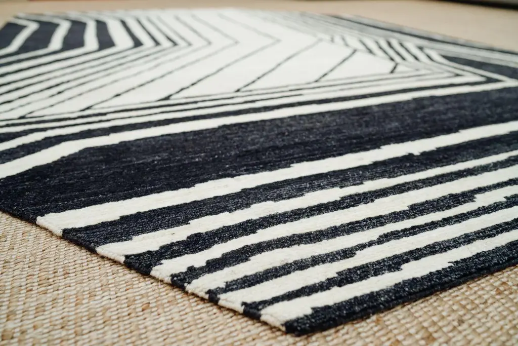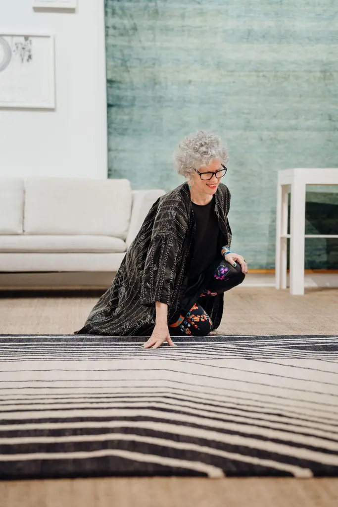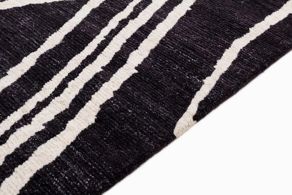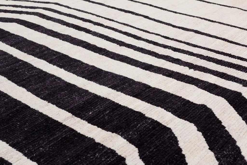This captivating collection showcases the creative partnership between Joseph Carini and artist, Michelle Weinberg, blending vibrant colors, intricate patterns, and exceptional textile artistry. Their shared enthusiasm for dynamic compositions and the rich history of handmade textiles laid the groundwork for this collaboration. Each piece is a handwoven carpet, meticulously crafted in Nepal through bespoke production, ensuring unmatched quality and artistry. This collection celebrates the duo’s passion for color and striking graphics. Each carpet is customizable in size, material, and color to suit individual tastes.“Deco Polygon probes the space-bending properties of pattern. This rug appears to change shape depending upon the vantage point from which it is viewed.” --Michelle WeinbergShown here in a low knot count wool, this irregular 8x10 cut out area rug is artistic and bold. With wonderful texture, graphic black and white lines form a dimensional cube. The shape appears to shift depending on the viewer's vantage point. Hand knotted in our exclusive workshop in Nepal, this rug is a highly durable handmade labor of love. Woven in our Shiva Puri weave with the finest hand processed Himalayan wool. The wool's natural lanolin will come out over time and give it a beautiful patina, softness, and shine. Also available in a variety of materials including, silk, wool, mohair, wild nettle, and a combination. Please reach out for customization.Carini’s design philosophy is heavily influenced by historical contexts and nature, merging his graphic and organic design interests with his considerable knowledge of decorative arts, architecture, and industrial design history. His expertise in exotic natural dyes and hand-processed materials has become a cornerstone of his work.Joseph Carini is known for his innovative approach, constantly experimenting with design concepts and natural materials. He works closely with designers and clients, offering his expertise to help realize their visions while ensuring practical and aesthetic success. His emphasis on quality and longevity means that each carpet is crafted to last a lifetime, using the most environmentally friendly dyes and processes.Since founding Carini in 1997, Joseph Carini has worked with diverse clients, from A-list celebrities to high-end projects. His creations appeal to design aficionados and art collectors who value unique, authentic pieces. Carini’s rugs are more than just decorative items; they are canvases imbued with intention, positive energy, and a soul that brings warmth and life to any space.Dimensions: 8’ (W) x 10’ (L)Materials: Shiva Puri, woolReference #37672
