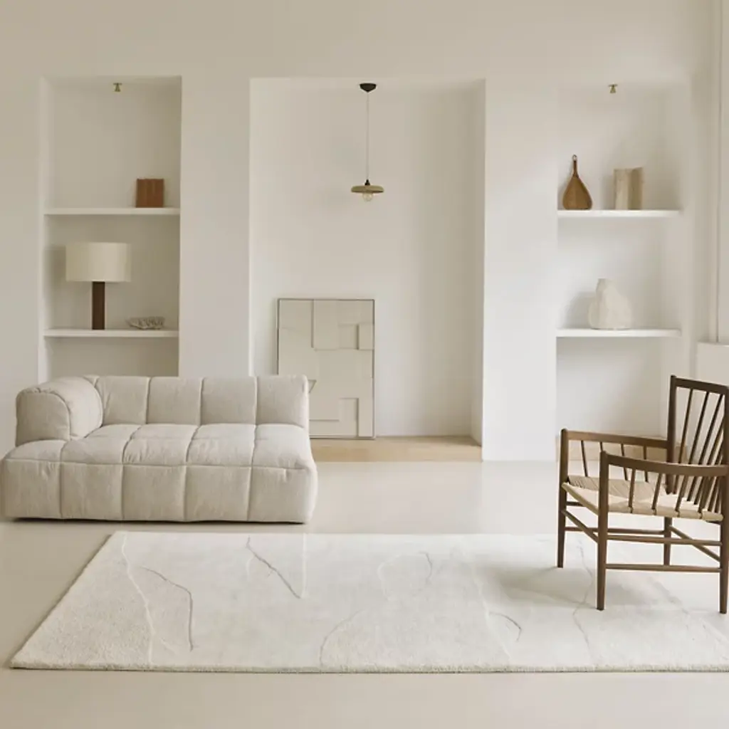 The Decor Scape Area Rug from Brink & Campman embraces minimalism with gentle horizontal textures. Indian artisans handtuft each rectangular piece using 100% wool for exceptional quality and comfort. The subtle surface variations create a contemplative foundation that anchors furniture without competing for attention. Its non-directional pattern allows versatile placement in any room orientation. The wool fibers naturally resist compression, maintaining the rug's appearance even in high-traffic pathways.
