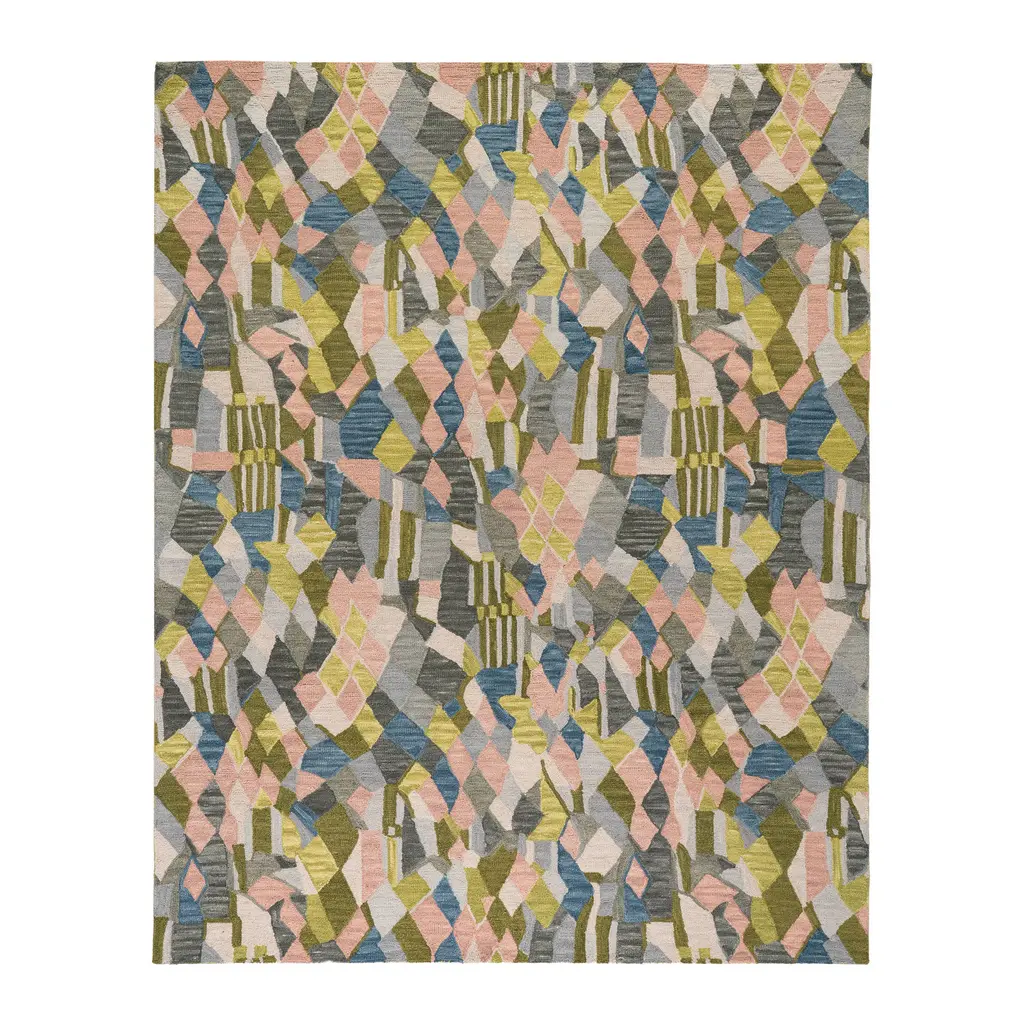 Part of collaboration with Kit Kemp, co-owner and creative director for Firmdale Hotels. The Deer Leap Hand-Hooked Wool Rug grounds your space with a soft but dramatic mosaic glass pattern. A blend of wool and performance fibers ensures durability.