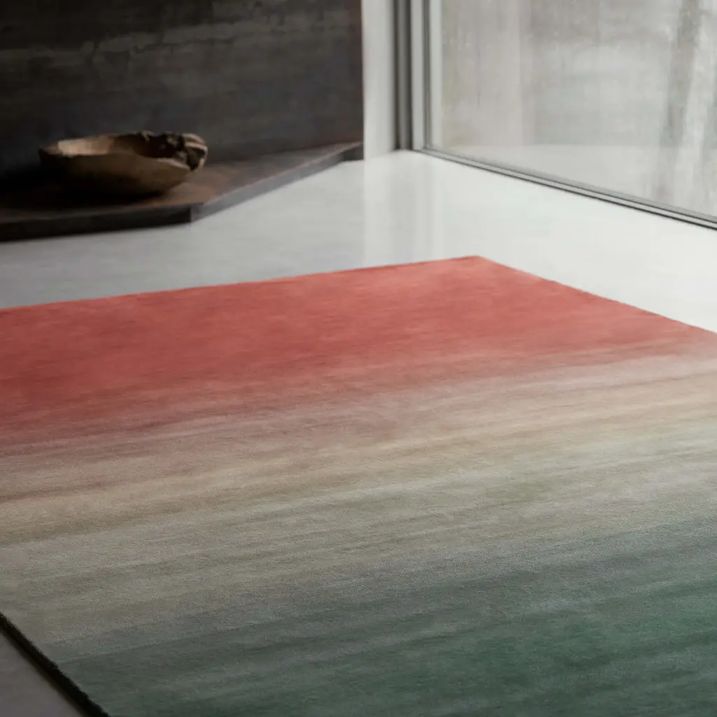 The Degrade Rug by GAN Rugs, designed by Patricia Urquiola, features a striking gradient that transitions seamlessly between tones, creating a bold yet refined effect. Hand-knotted from 100% virgin wool, this rug showcases expert craftsmanship and a meticulous color progression that enhances any interior. Available in Beige-Gray and Petrol-Wine, it adds depth and warmth to contemporary and classic spaces alike. Offered in three sizes, Degrade is a sophisticated statement piece designed for versatility.