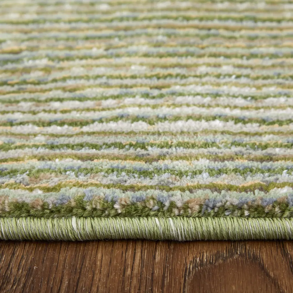 Collection: Deja Colors: Green, Tan Construction: Machine Made Material: Face: Polypropylene, Polyester / Warp: Cotton Pile: Low Pile Pile Height: 0.47" Styles: Contemporary,Casual Backing: Cotton Made In: Turkey Thickness: 0.47" Price Range: $$$$$ (Affordable)