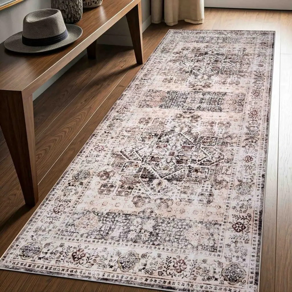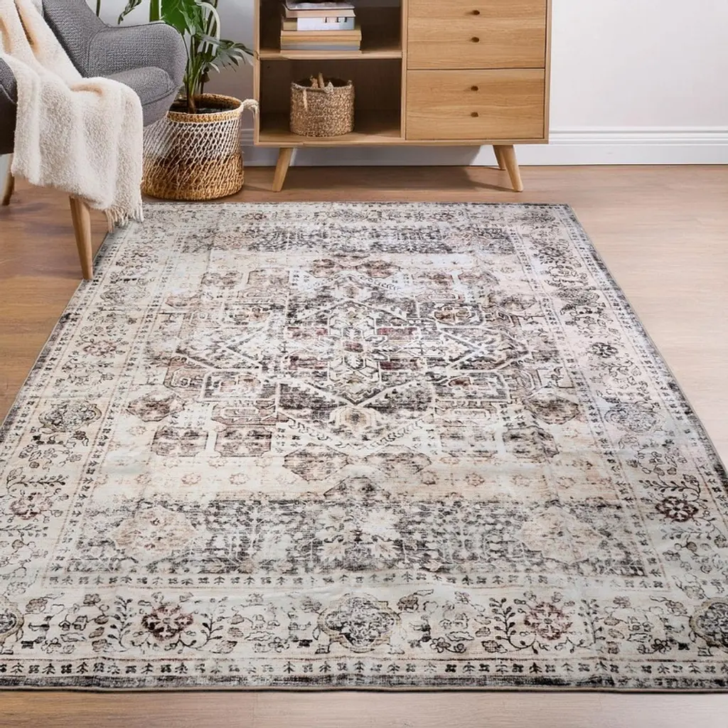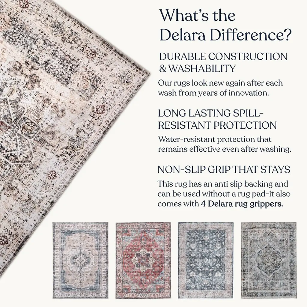 Delara Machine Washable Area Rug, Soft & Durable, Non-slip Rug For High Traffic Areas, Beige/brown, 8'x10'
