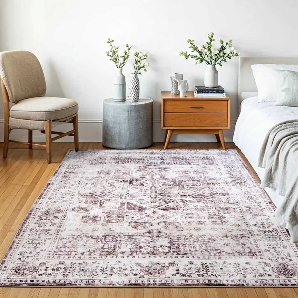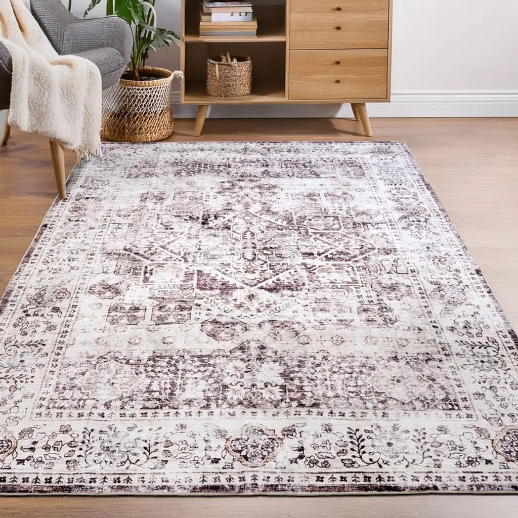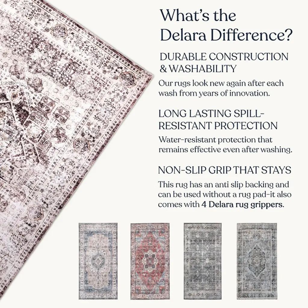 Delara Machine Washable Area Rug, Soft & Durable, Non-slip Rug For High Traffic Areas, Brown/neutral, 8'x10'