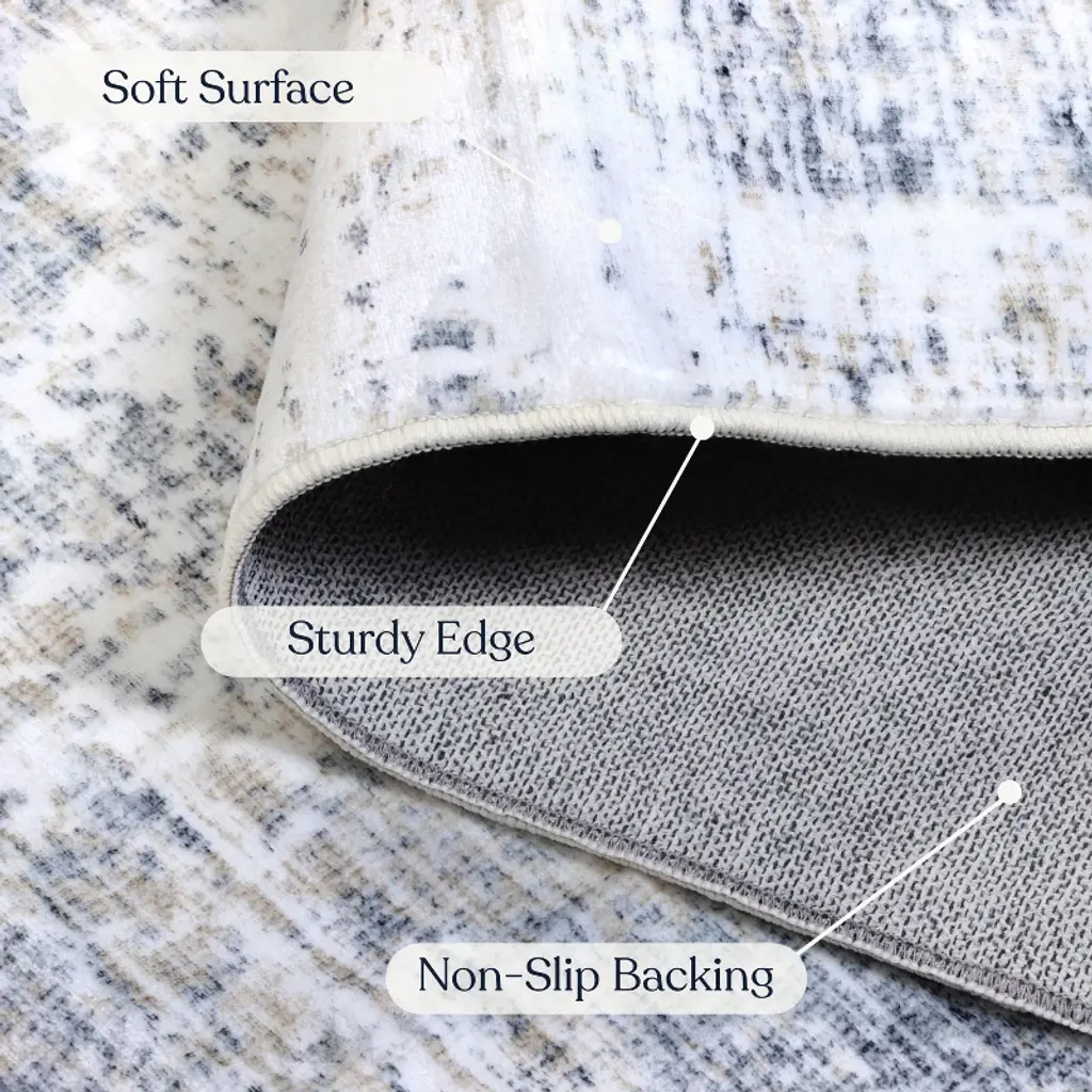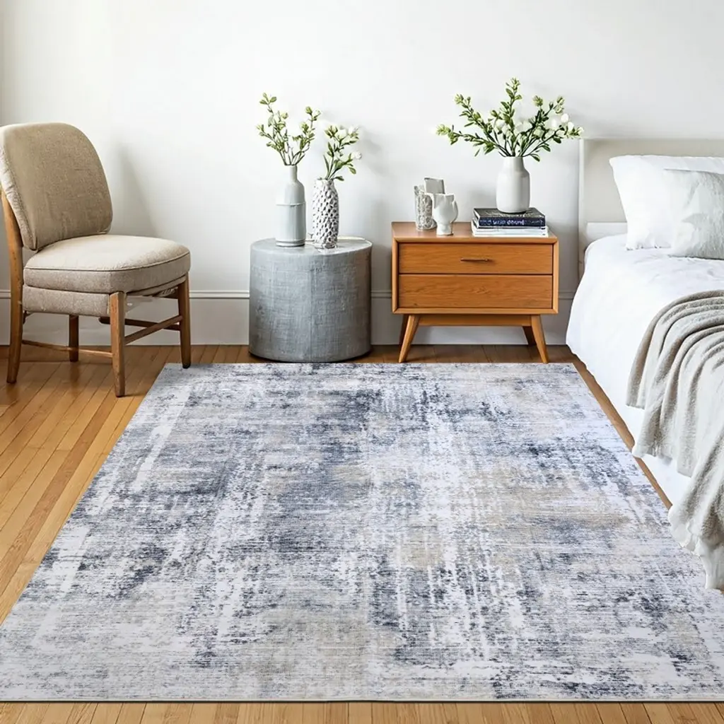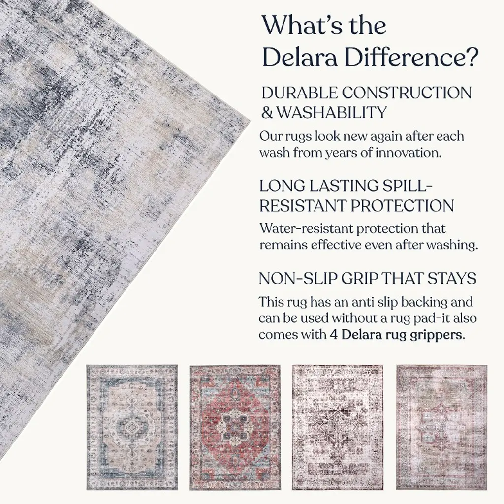 Delara Machine Washable Area Rug, Soft & Durable, Non-slip Rug For High Traffic Areas, Grey/beige, 8'x10'