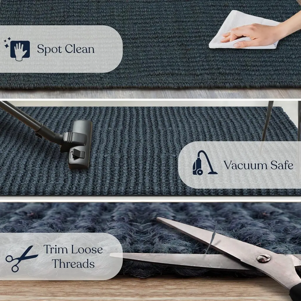 Delara Premium Handwoven Natural Fiber Area Rug Boucle 100% Jute Excellent Choice In High-Traffic Areas Such As Living Rooms - 10' X 14' - Charcoal - Rectangle