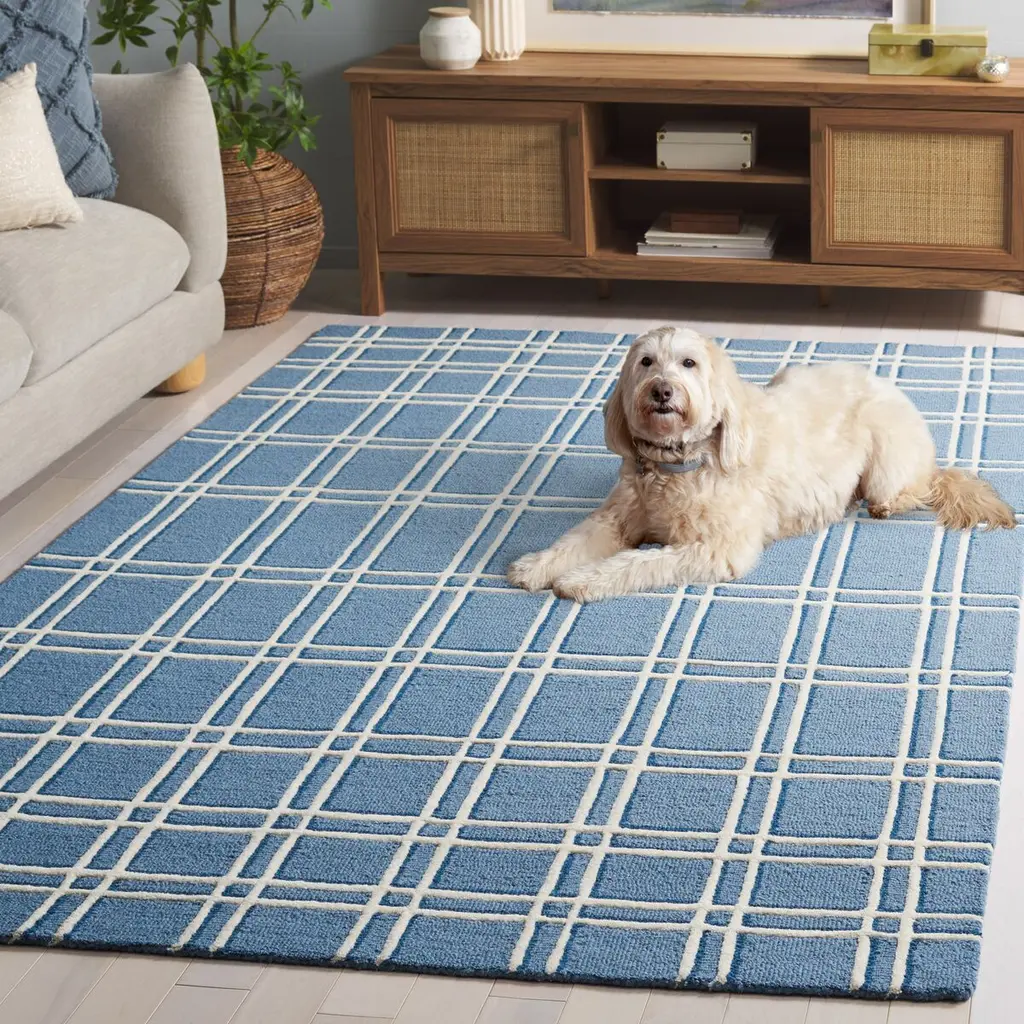Introducing our 4' X 6' Small Rectangle area rug ? an exquisite blend of classic design and contemporary craftsmanship. Made in India, this product embodies an authentic, timeless sense of style. Finished in the captivating hues of blue and ivory, those looking to add a splash of color to their home will find it impossible to resist. The rug is meticulously handtufted by skilled craftsmen using an 80% wool and 20% cotton composition. At a height of 1/2", it?s plush but also maintains a level of neat sophistication. It?s the perfect decor for anchoring your living room, bedroom, or entryway, introducing a plush jewel-tone that promises to captice and charm. Providing not only stunning aesthetics, this area rug also prides itself on durability and comfort. Wool brings a hard-wearing feature while cotton adds to the softness, giving the rug a cozy feel underfoot. It is an investment piece that offers longevity and a touch of luxury. Perfect for those admirers of both beauty and function, this rug will reinvigorate your home with classic elegance. With this 4' X 6' Blue / Ivory area rug, you?ll be stepping into a world of luxury every time you enter the room.