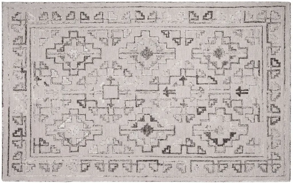 Elevate your space with this exquisite 4' X 6' taupe and black small rectangle area rug, boasting a luxurious pile height of 3/8". Crafted in India through a meticulous hand-tufted technique, this rug is an epitome of durability and texture with a blend of 55% wool, 25% viscose, 10% nylon, and 10% cotton. Its intricate geometric pattern exudes a timeless elegance, creating a focal point in any room. While not washable, its quality materials ensure long-lasting sophistication. Please note, a rug pad is recommended as it is not slip-resistant.