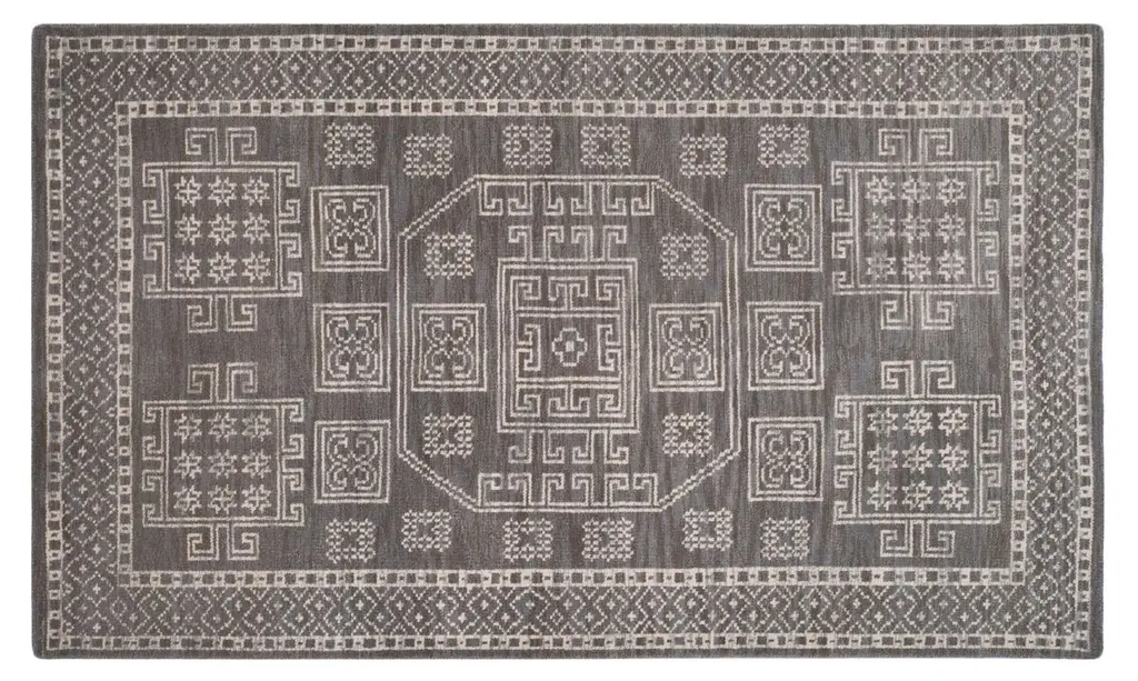 Elevate your space with this exquisite 4' X 6' taupe and black small rectangle area rug, boasting a luxurious pile height of 3/8". Crafted in India through a meticulous hand-tufted technique, this rug is an epitome of durability and texture with a blend of 55% wool, 25% viscose, 10% nylon, and 10% cotton. Its intricate geometric pattern exudes a timeless elegance, creating a focal point in any room. While not washable, its quality materials ensure long-lasting sophistication. Please note, a rug pad is recommended as it is not slip-resistant.