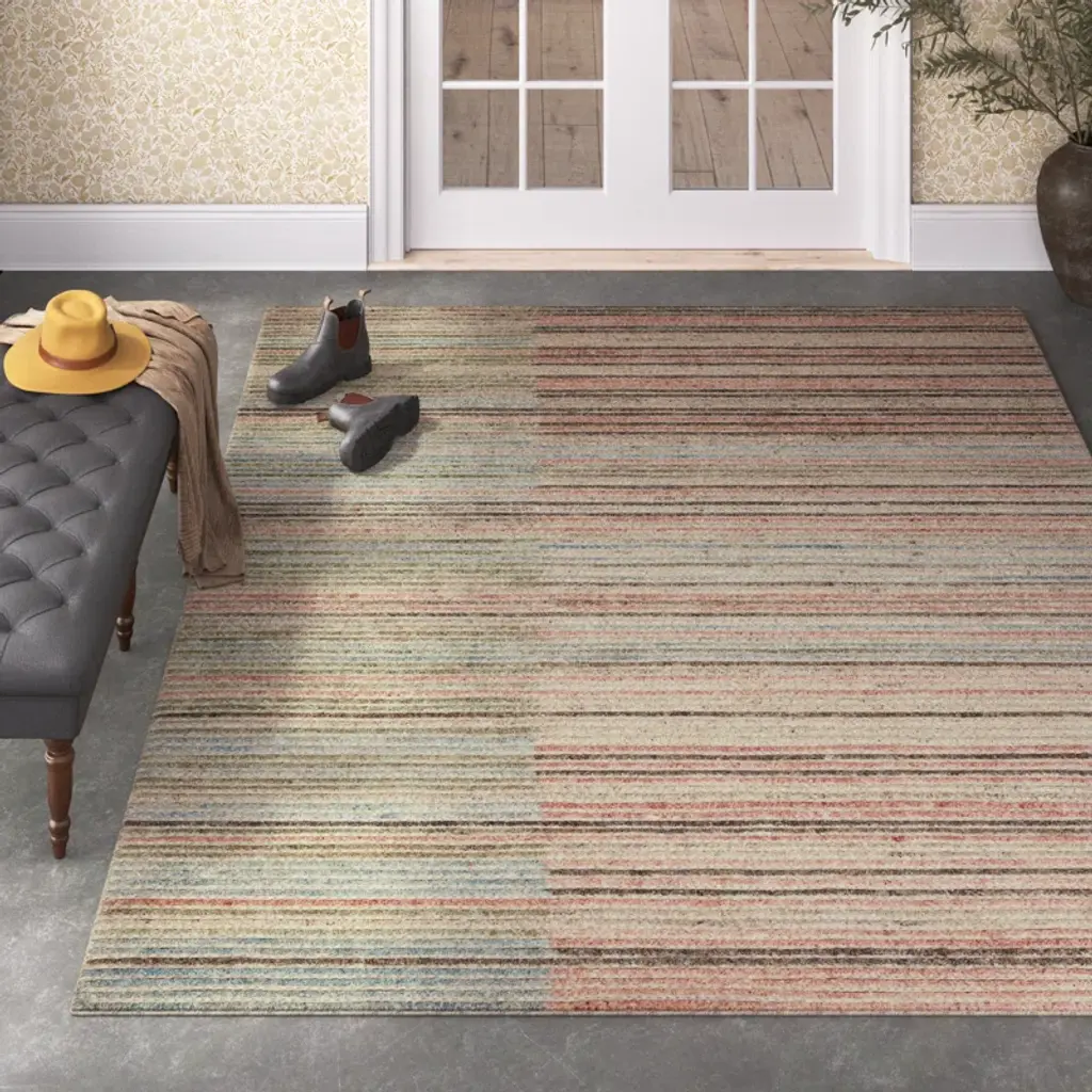 Dellar Striped Hand Tufted Wool Area Rug In Beige/brown/blue/red