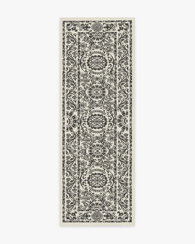 Delphina Black & White Rug takes the floral motif to a whole new level with its beautiful woodblock texture. This rug features a central floral medallion, with a network of vines that stems outward, creating depth and drama and adding instant sophistication to any room.