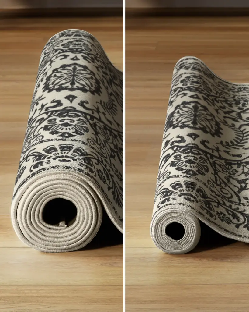 Delphina Black & White Rug takes the floral motif to a whole new level with its beautiful woodblock texture. This rug features a central floral medallion, with a network of vines that stems outward, creating depth and drama and adding instant sophistication to any room.