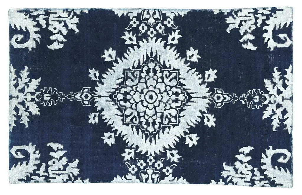 Delphina Navy Blue Rug takes its design cues from the art of woodblock printing. Featuring intricate floral and vine details, this navy blue rug plays up a classic style in a modern colorway.
