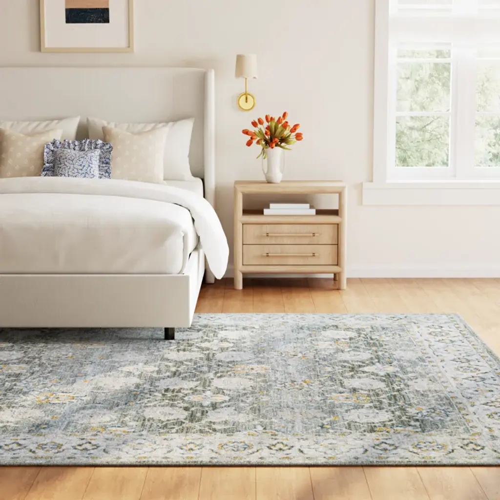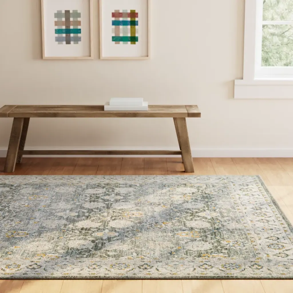 With a stylish modern pattern and stunning colors, this rug invites contemporary style into your living space. It features a subtle high/low texture that brings added dimension, while the bordering fringe gives this piece a cozy touch. Non-shedding and easy to clean, this piece is pet and kid-friendly making it a great choice for a busy living room, entryway, or any room in your home!