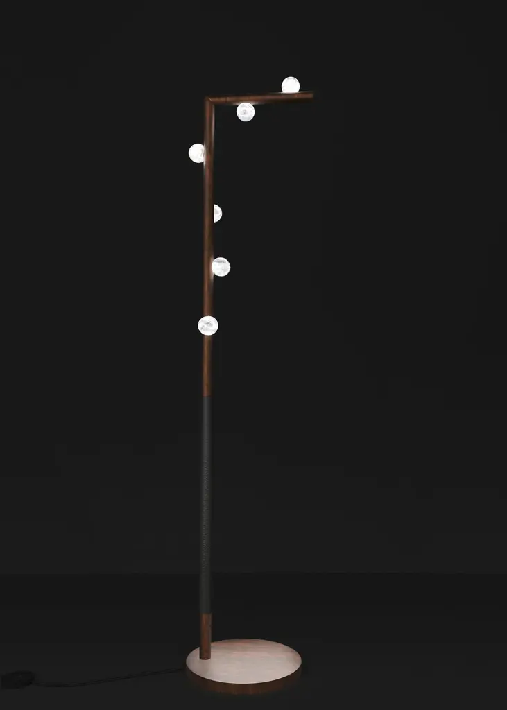 Demetra Ruggine Of Florence Metal Floor Lamp by Alabastro ItalianoDimensions: D 30 x W 37 x H 158 cm.Materials: White alabaster, metal and leather.Available in different finishes: Shiny Silver, Bronze, Brushed Brass, Ruggine of Florence, Brushed Burnished, Shiny Gold, Brushed Black, Freedom Green, Shiny Black and Copper. Please contact us.All our lamps can be wired according to each country. If sold to the USA it will be wired for the USA for instance.The name Demetra, goddess of flora, sister of Zeus, fully reflects the particular shape of this series by Alabastro Italiano. The spheres, of pure hand-turned alabaster, look like fruits hanging from the branches of a hypothetical tree of light. These brilliant elements stand out between heaven and earth and symbolize the richness that only Mother Nature can offer us.After years of experience in the family business, which specializes in design and lighting, Riccardo and Alberto Ongarato found the brand Alabastro Italiano.Each project is conceived and designed to give a strong sign of recognizability and uniqueness. The use of precious materials such as alabaster, brass, leather and blown glass, worked by the skilful hands of our craftsmen, are combined to create “timeless” objects.From the depths of the earth to the light of the sun. ALABASTRO ITALIANO care about these extremes and transcends them in a creative dynamic that emphasizes simplicity and clean-cut lines.The company has created an entirely new project MADE IN ITALY, revolutionizing the previously existing collections into eternal and evergreen lighting elements. By designing clean-cut and original lines, built-in with the latest technology and continuously innovating, ALABASTRO ITALIANO has never lost sight of its goal: perfection. The result of this work is an extraordinary collection of alabaster lightings.Alabaster needs human hands to come to life. The charm of these stone objects comes from their uniqueness, from the fact that they come from the hand of those who has left a mark and a memory with their work, each grain makes each piece unique.Alabaster needs human hands to come to life. The charm of these stone objects comes from their uniqueness, from the fact that they come from the hand of those who has left a mark and a memory with their work, each grain makes each piece unique.Alabaster is a Material that leaves little traces of magic all around it. It is difficult to identify the exact point where the Material ends and its reflection begins. It is impossible to understand how far the light sinks in its soft transparency. It changes according to the positions in which it is placed, depending on the point of view. Alabaster is a compact and rare stone that lays down very precise laws requires a familiarity that only Italian craftsmen possess.Alabastro Italiano collaborates with each client to create a unique project. Starting from the advice for better architectural lighting, it brings its know-how, materials, design and creative inspiration to interior architects and interior designers.