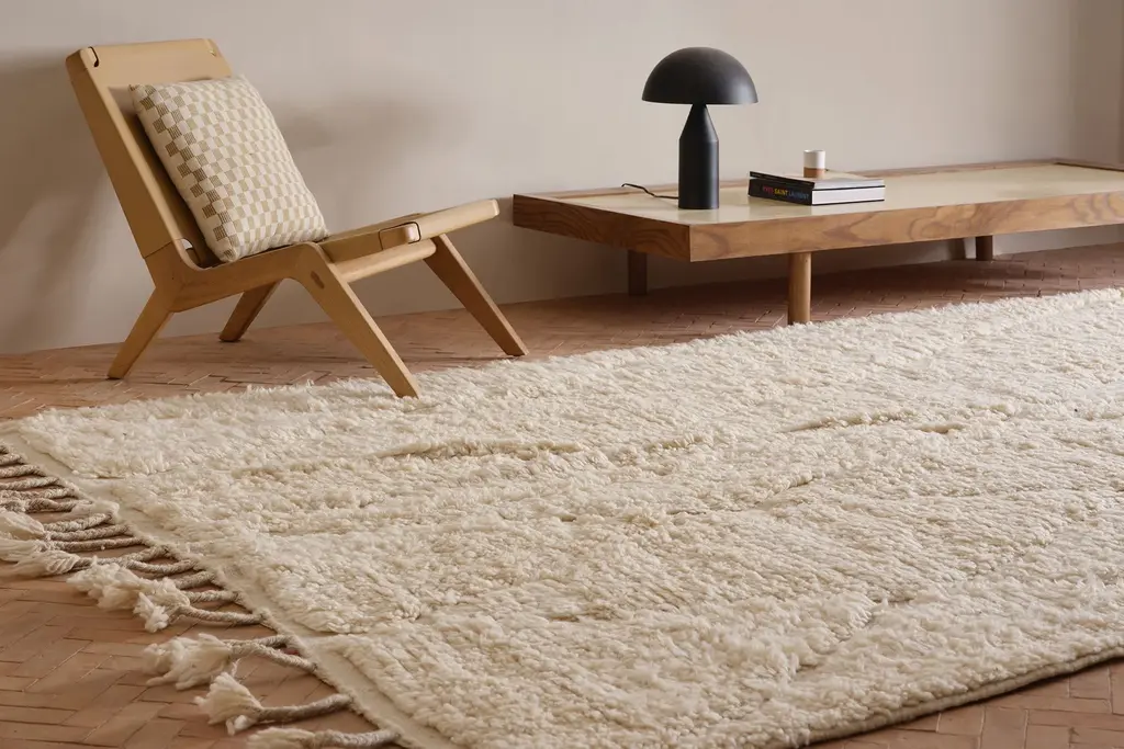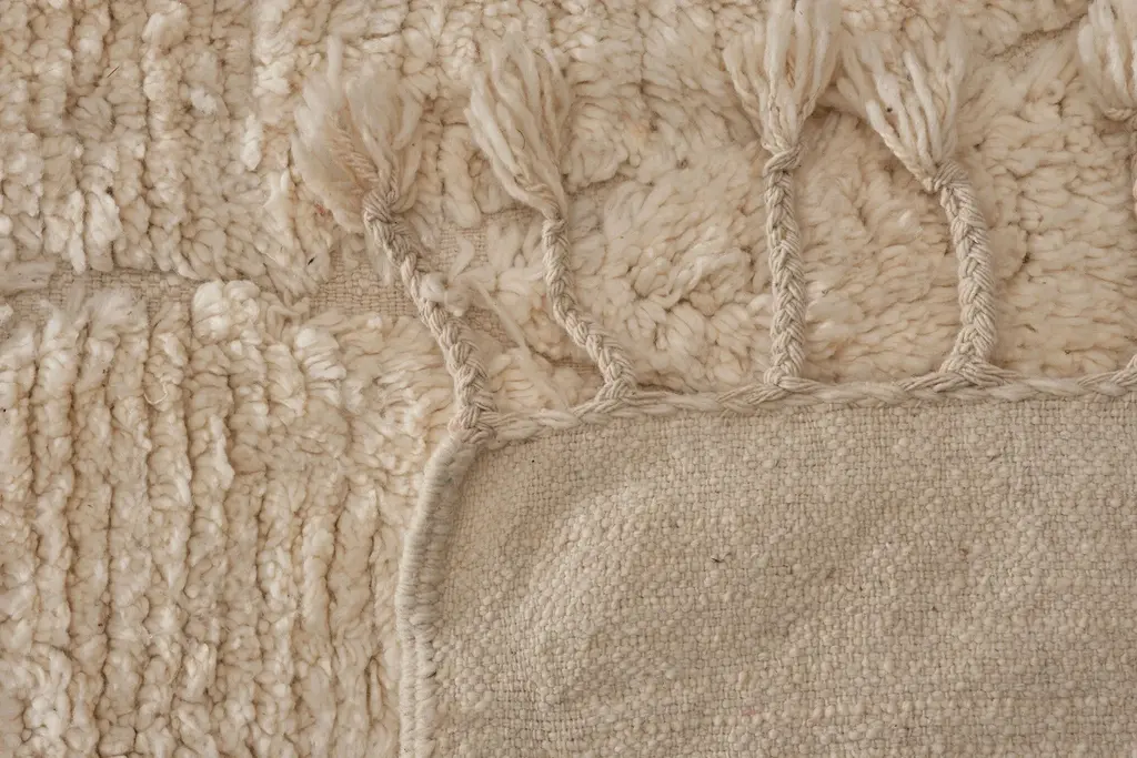 Our Moroccan pieces are each one-of-a-kind. Much of our collection was woven between 30 and 100 years ago, and curated by us. Other rugs in our collection are fresh off the loom and made with traditional techniques. Moroccan rugs don’t come with a key. As with any painting or poem, their motifs have many subjective interpretations. Originally made for personal use, these rugs took months to weave, documenting a shifting tide of events and emotions in the weaver’s life.