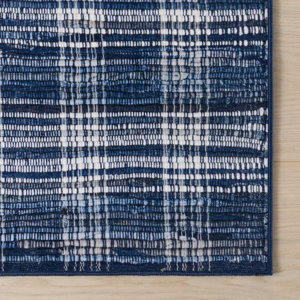 Denim Plaid Machine Washable Rug | Blue - 5' X 8'