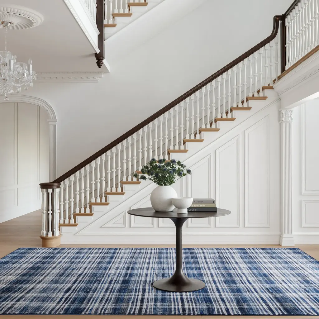 This synthetic rug features a classic plaid pattern that brings a touch of farmhouse charm to your home. Its washable, easy-to-clean construction makes it a practical and stylish choice for any high-traffic area.