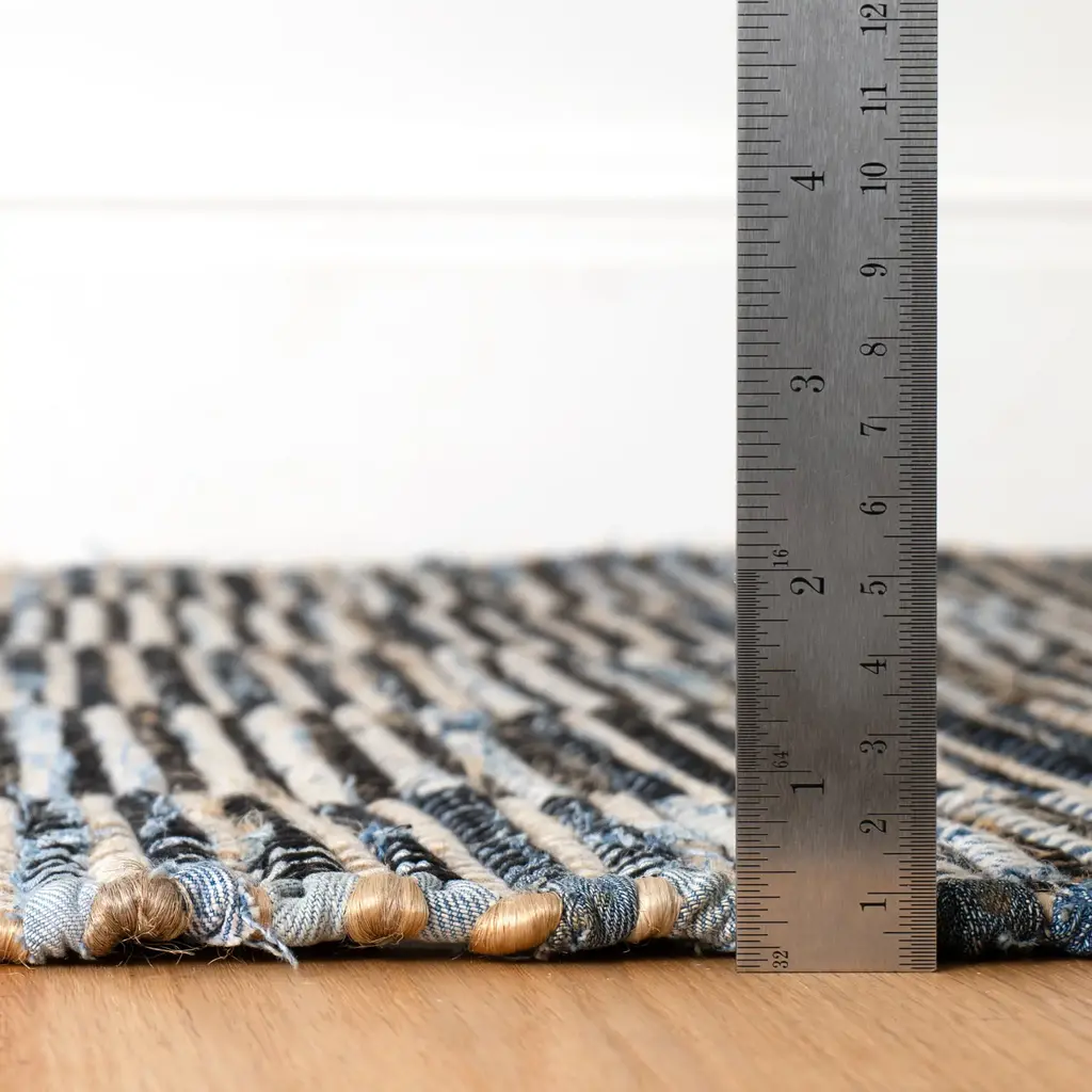 The Denim Rag Gridwork Handwoven Rug is our first rug crafted from a mix of jute and recycled denim. With its patchwork-inspired stripes in shifting shades of blue, this sustainably made rug adds casual charm to your space. The finely ribbed texture lends welcome softness underfoot.