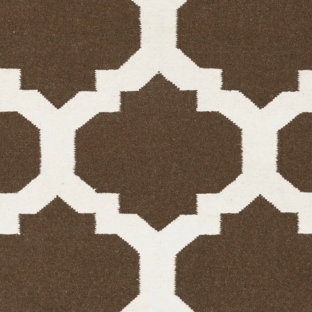Collection: Depew Colors: Ivory, Dark Brown Construction: Hand Woven Material: 100% Wool Pile: No Pile Styles: Transitional Made In: India Price Range: $$$$$ (Most Affordable)