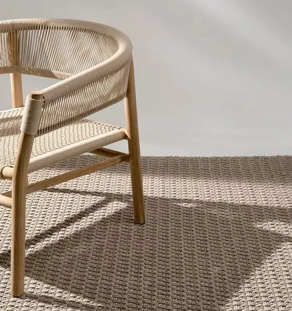 The Desert carpet is inspired by the nuances of sand and the thick weave creates a harmonious three-dimensional movement “ton sur ton”. Deep green, emerald, and turquoise are among the colours found in the Nomad carpets, which take inspiration from Mediterranean landscapes. The dense weave creates a smooth texture with a refined melange effect that enhances the colours and craftsmanship.