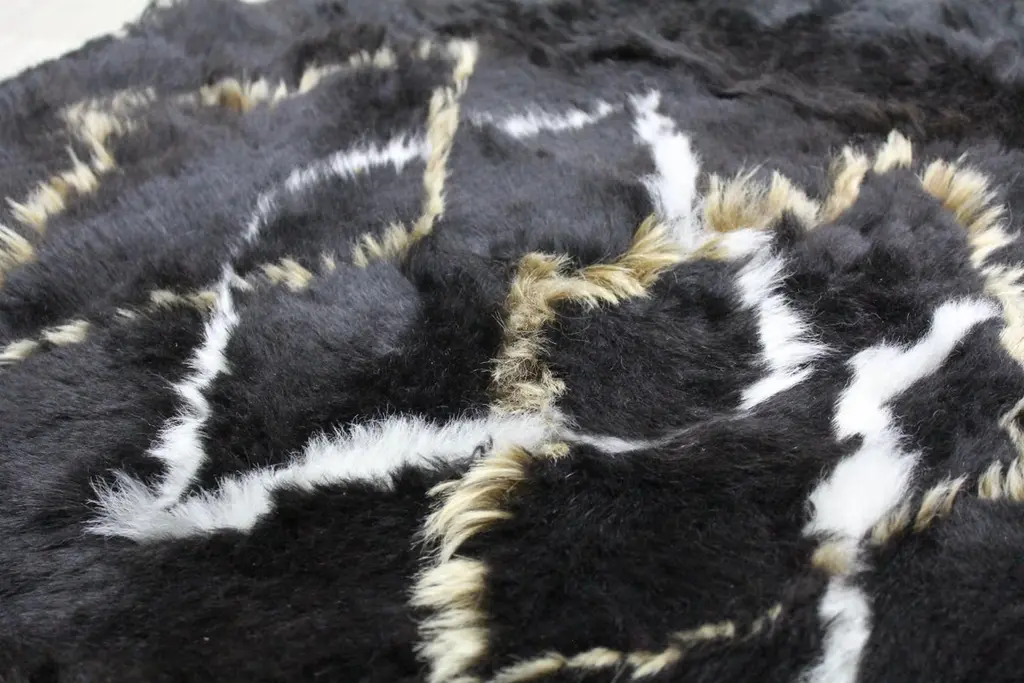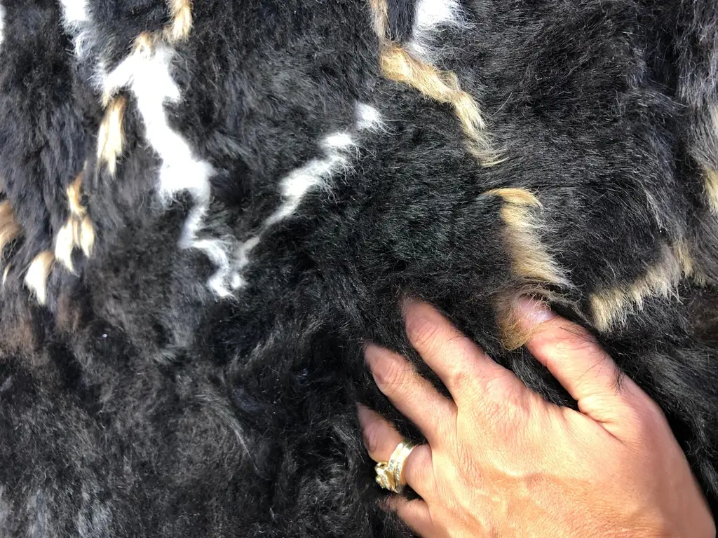 This golden nights, diamond Sheepskin rug is a one of a kind. It is meticulously handcrafted by Australian artisans using intricate patchwork detailing with unparalleled sheepskin craftsmanship and made from the finest, eco-friendly Icelandic sheepskins to create this beautiful and contemporary diamond sheepskin rug. The contrast white and gold diamond inlays create a dramatic effect against the natural black short wool sheepskin making this floor rug a work of art. Living with natural sheepskin translates its softness and charm and luminates the luxury in comfort. The selected sheepskins are carefully sourced from Europe's natural by-product and sustainable, eco-friendly tanning processes with the use of non-toxic chemicals making the wool on this Icelandic sheepskin rug more refined, healthier and softer for everyone to relax and enjoy.Being designers and artisans of bespoke sheepskin rugs, eluxury home works closely with designers, architects and homeowners creating one of a kind pieces. This Golden nights diamond rug can be custom made to size and any colour combination according to the colours available in the Icelandic sheepskin rug range. Samples of sheepskin colours are available, please contact eluxury for further details.Features:Featured rug size: 120cm Round / 4' roundColour: Natural blackGold and white sheepskin inlayHandcrafted from genuine Icelandic sheepskinApproximate 4 cm wool pileReverse lined with faux suede fabricMade in AustraliaColor swatch:Sheepskin color swatches are available upon request. A delivery fee may apply.Shipping:Due to the size and weight of this product, please contact us for a shipping quote.Caring for this product:Vacuum on a low settingRemove soiling without spreading furtherSpot clean only with gentle wool washDo not apply chemical agents to the productDo not steam cleanKeep away from direct sunlight to prevent colour fading and fibre damageProfessional dry clean only.