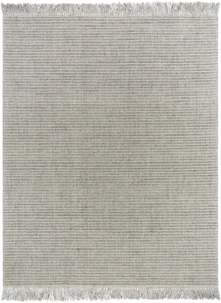 Collection: Desma Colors: Dark Red, LightGray, MediumGray Construction: Hand Loomed Material: 55% Wool,35% Polyester,10% Jute Pile: No Pile Styles: Transitional,Traditional Made In: India Thickness: 0.32" Fringe Length: 4" Price Range: $$$$$ (Affordable)