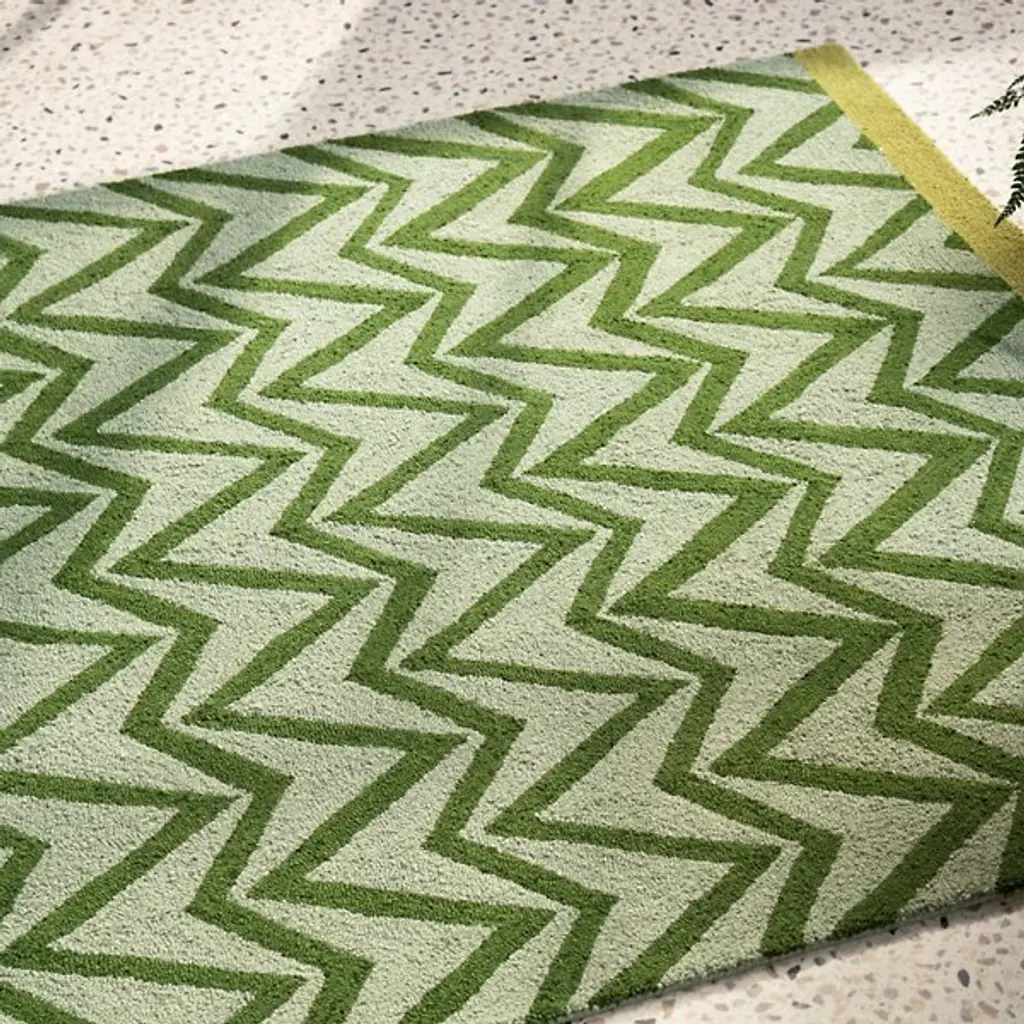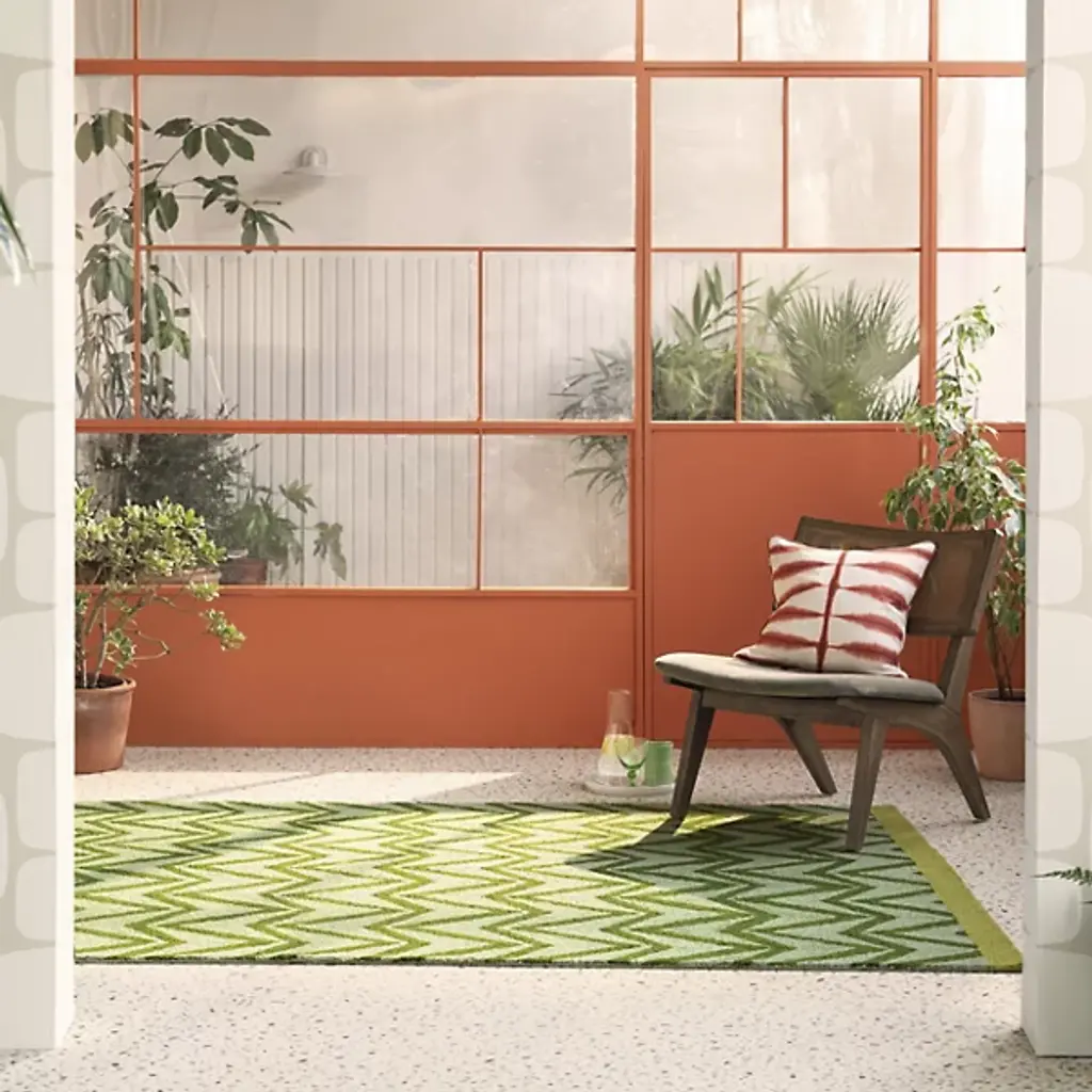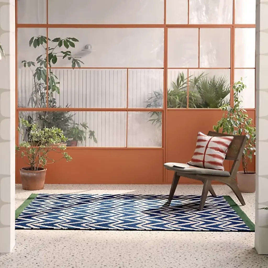 The Dhurrie Outdoor Area Rug from Scion Living is made to bring a playful, stylish touch to your garden or patio. Its design features a simple chevron pattern that’s both bold and calming. Hand-tufted in a soft loop pile from 100% recycled PET, it’s durable, eco-friendly, and perfect for adding charm to any outdoor space.