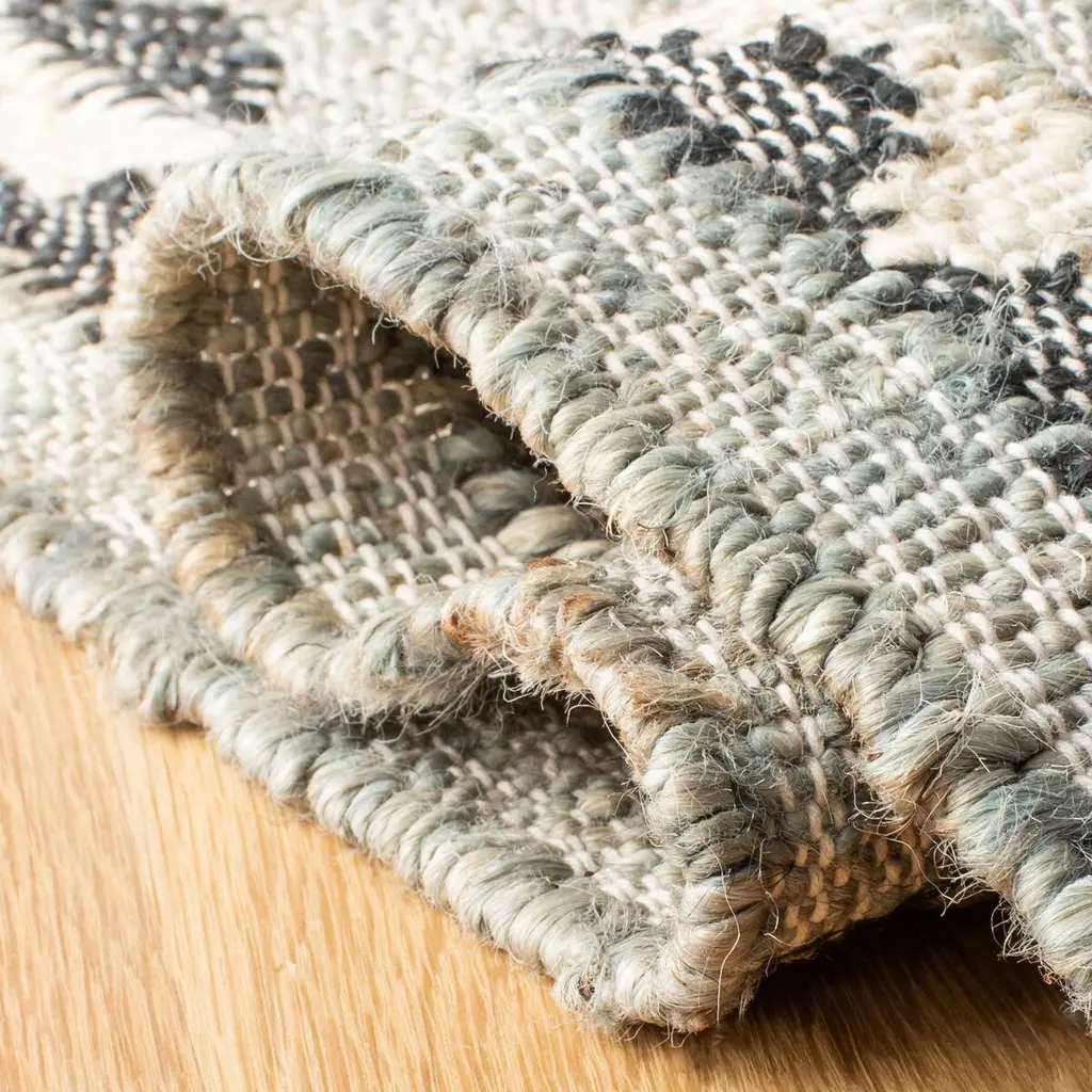 Introducing our exquisite 3' x 5' area rug, a perfect blend of traditional craftsmanship and modern style, meticulously handcrafted in India. This small rectangle rug, boasting a height of 1/4", is an embodiment of the Bohemian spirit with its vibrant collision of blue and black hues. A testament to skilled artisanal technique, each rug is constructed using the age-old Flat Weave method, rendering it not only beautiful but also durable. Made from high-quality jute, a sustainable and eco-friendly material, it is designed to withstand the test of time while providing a touch of natural elegance to your living space. The eye-catching pattern, as showcased in the image, features an intricate geometric design that is both bold and sophisticated, making it a statement piece for any room. The symmetrical arrangement of diamonds and the intricate border detail exude an aura of balanced beauty, bringing a sense of harmony and cultural flair to your d?cor. Ideal for high-traffic areas or as a centerpiece in a more intimate setting, this rug promises to captivate attention and spark conversations. Embrace the allure of the Bohemian style with this stunning blue and black jute rug, a seamless addition to any home seeking a touch of worldly charm and artisanal excellence.