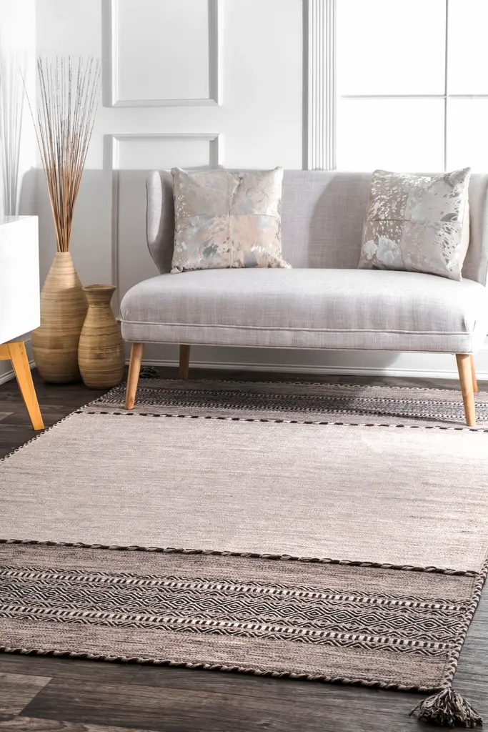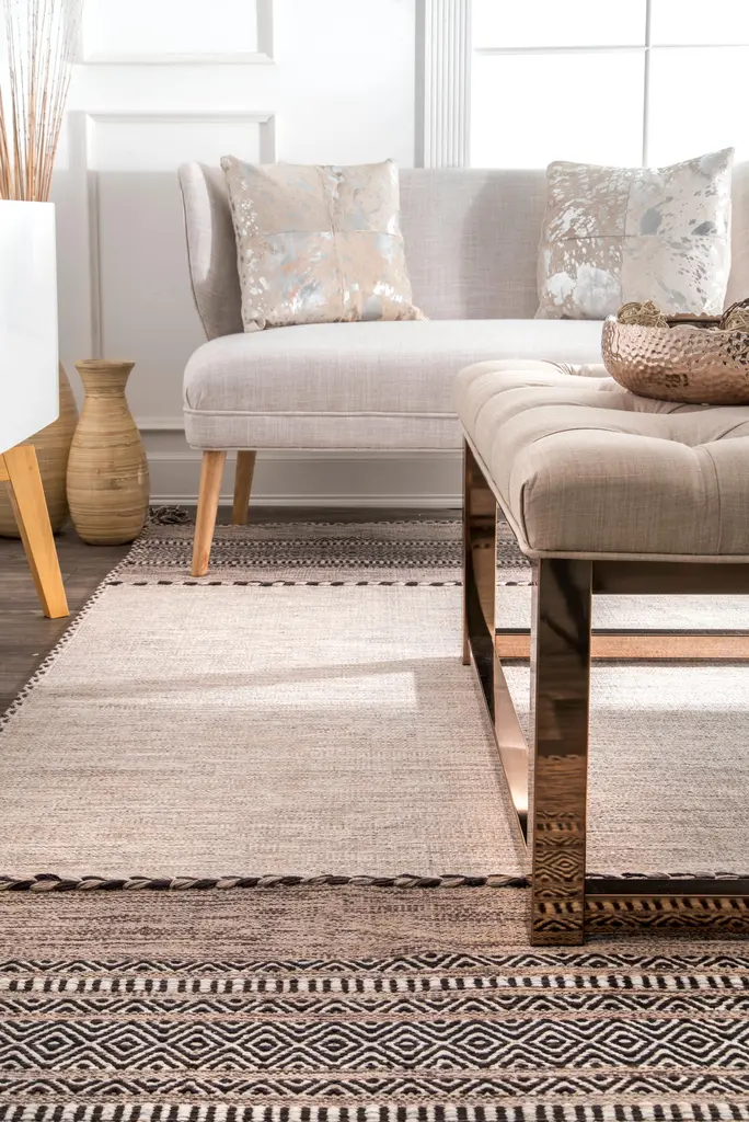 Diamond Banded Rug | Light Beige - 4' X 6'