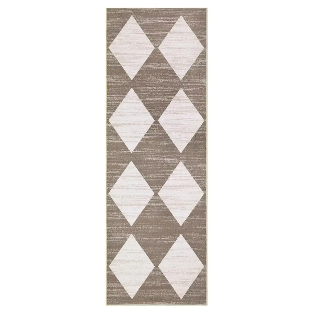 Diamond Check Pattern Beige Gray 2 Outdoor Rug