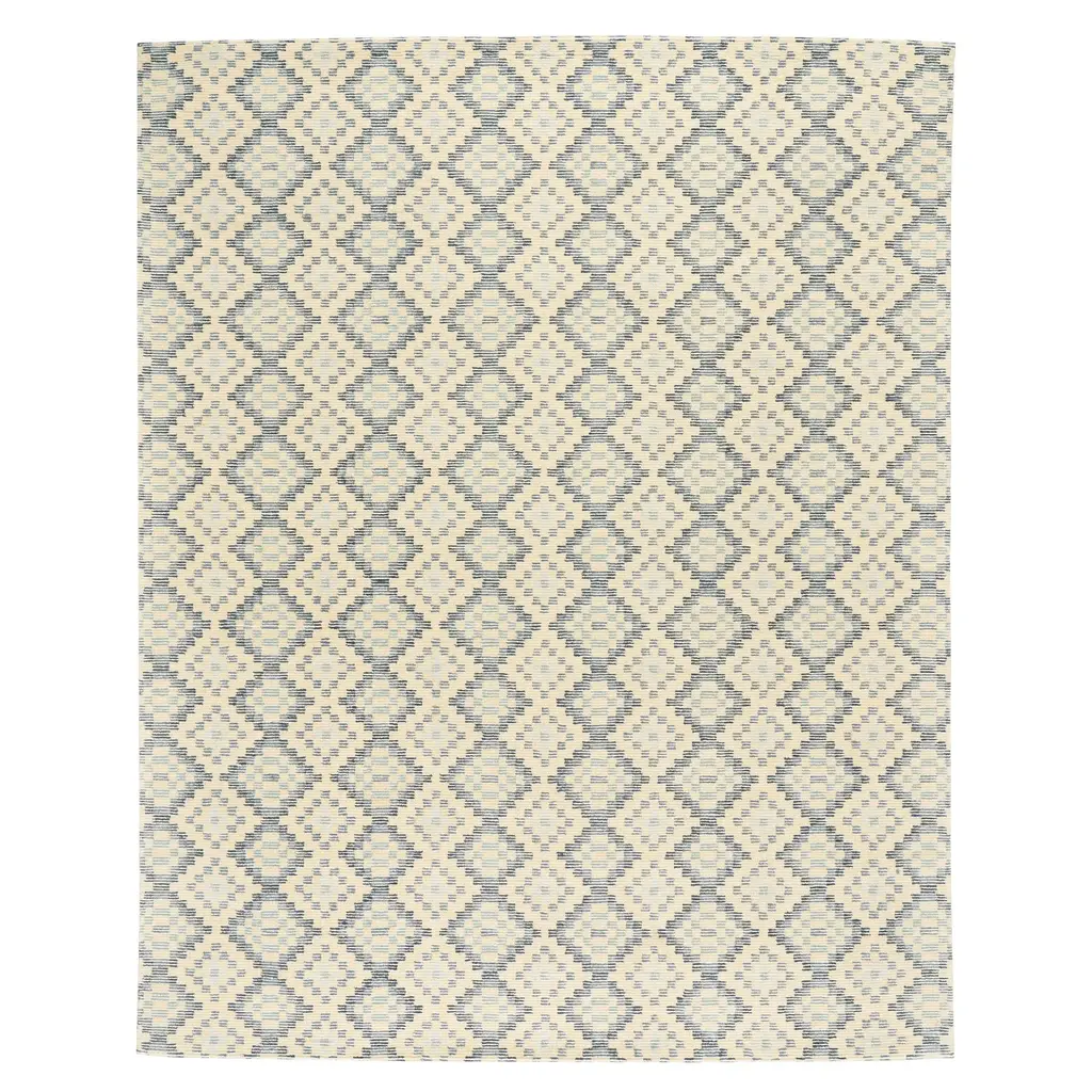 This beautiful, classic wool carpet embodies a fusion of traditional and modern geometric patterns that invite you to walk barefoot on its luxuriously plush wool pile. Hand-hooked and sheared to a velvety raised corduroy rib, then micro-striped with alternating solid white hooked loops to create an optical muting effect.