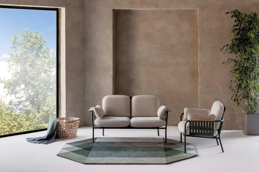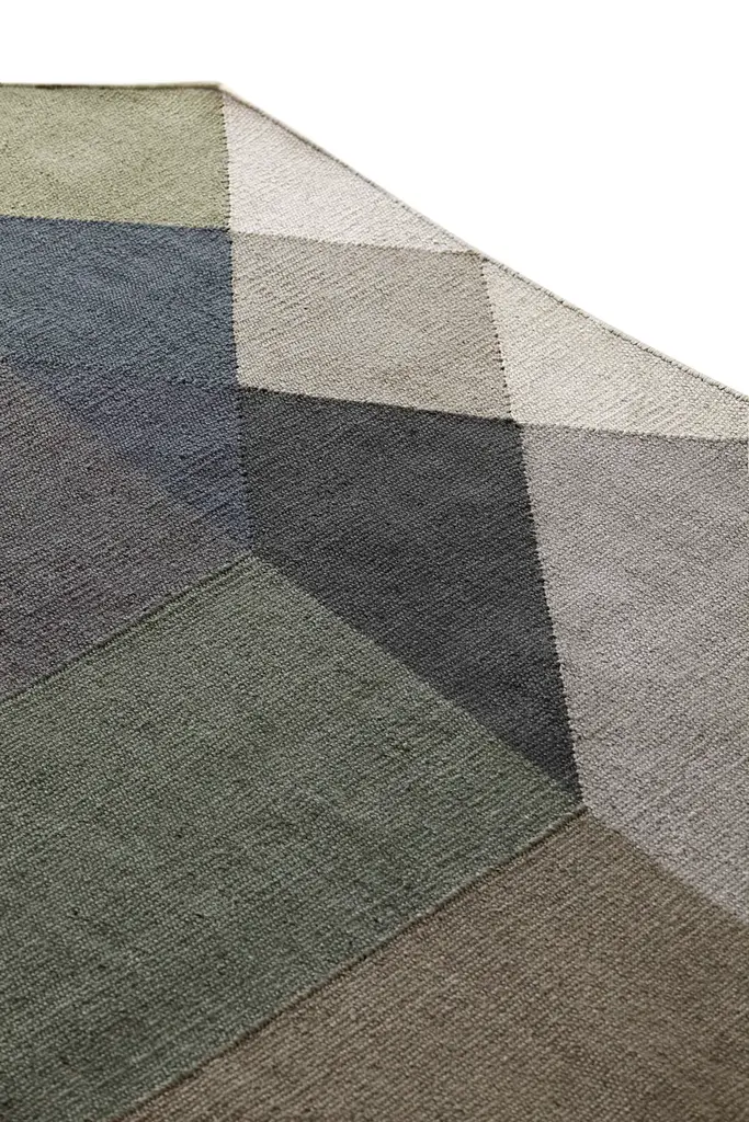 Charlotte Lancelot has created three new color combinations for her popular collection of DIAMOND kilim rugs for GAN, made of recycled fibers from plastic materials (100% recycled PET).DIAMOND, with its perceived transparencies and gradients, is now introduced in more natural tones, such as Blue-Brown, Green-Grey and Orange-Wine. The new options join the existing colorways: Pink-Yellow, Nude-Petrol and Blue-Green.DIAMOND’s octagonal shape is inspired by the geometry of the diamond, a universal symbol of strength and beauty, to which its facets and hypnotic figure bring a new meaning.These rugs, suitable for outdoor and indoor spaces thanks to their recycled PET composition, are available in three sizes.The fibers with which DIAMOND kilim rugs are crafted by hand go through a meticulous treatment and regeneration process that lengthens the useful life of the existing plastic. This gives them a new purpose (upcycling) and turns them into a piece of contemporary design that is also easy to clean and maintain.