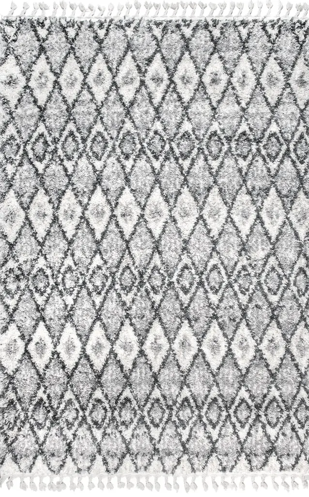 Diamond Moroccan Shag With Tassels Rug | Grey - 6' X 6'