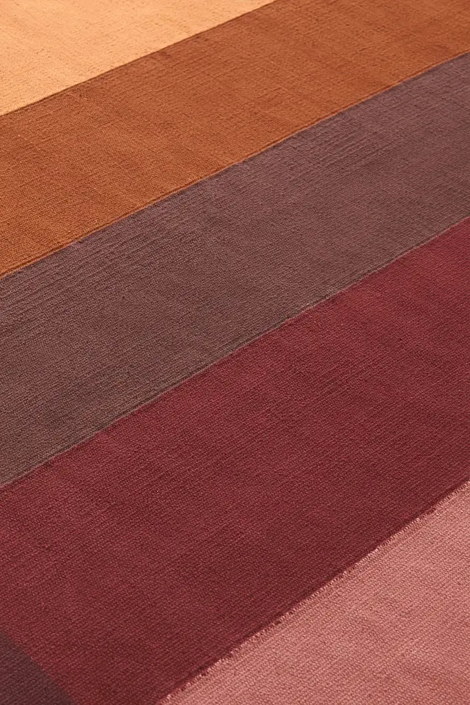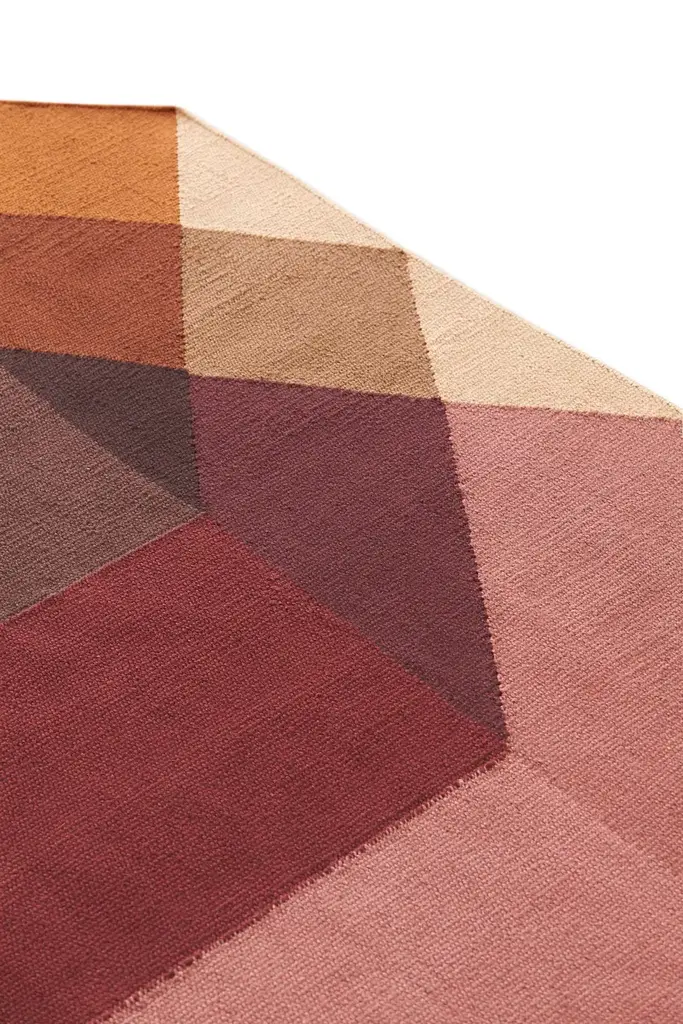 Charlotte Lancelot has created three new color combinations for her popular collection of DIAMOND kilim rugs for GAN, made of recycled fibers from plastic materials (100% recycled PET).DIAMOND, with its perceived transparencies and gradients, is now introduced in more natural tones, such as Blue-Brown, Green-Grey and Orange-Wine. The new options join the existing colorways: Pink-Yellow, Nude-Petrol and Blue-Green.DIAMOND’s octagonal shape is inspired by the geometry of the diamond, a universal symbol of strength and beauty, to which its facets and hypnotic figure bring a new meaning.These rugs, suitable for outdoor and indoor spaces thanks to their recycled PET composition, are available in three sizes.The fibers with which DIAMOND kilim rugs are crafted by hand go through a meticulous treatment and regeneration process that lengthens the useful life of the existing plastic. This gives them a new purpose (upcycling) and turns them into a piece of contemporary design that is also easy to clean and maintain.
