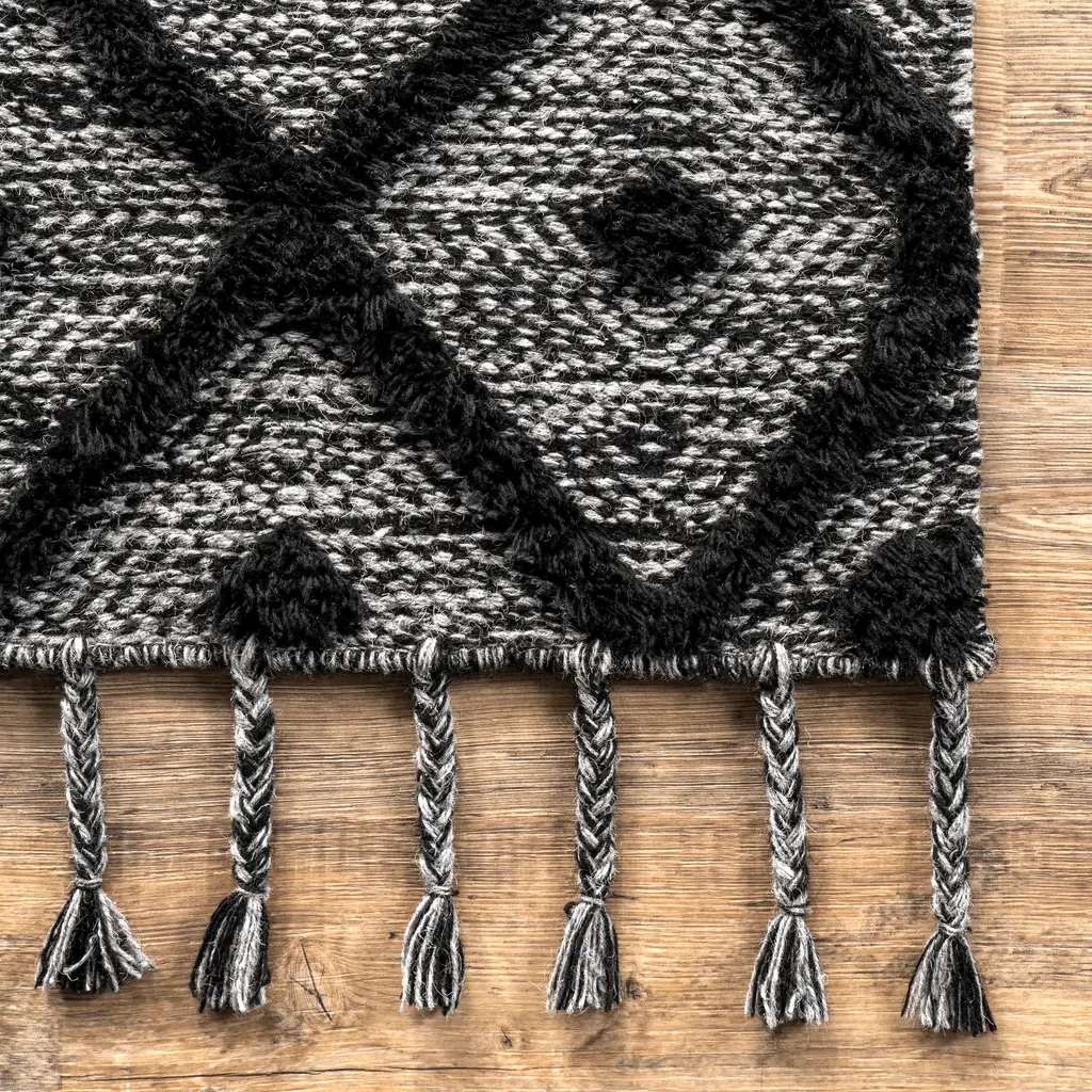 Diamond Textured Trellis Tassel Rug | Dark Grey - 4' X 6'