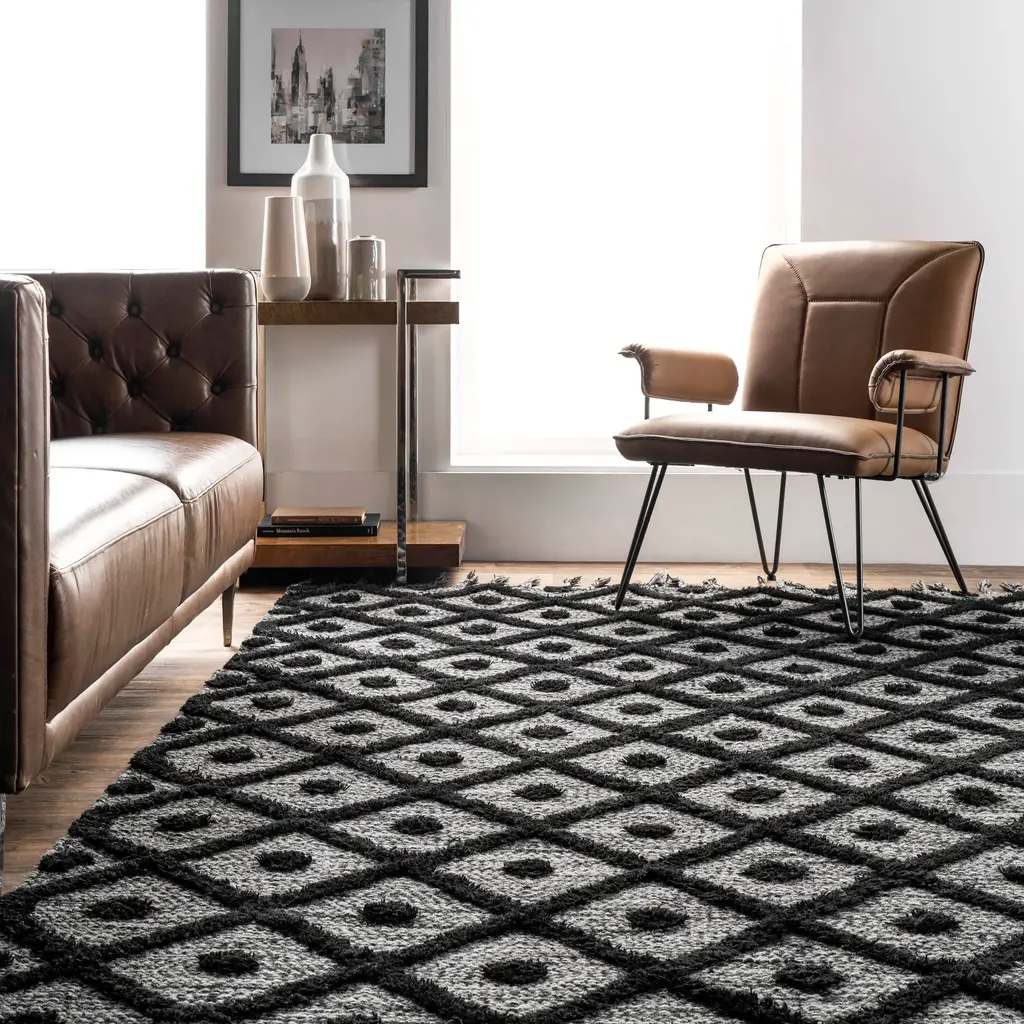 Diamond Textured Trellis Tassel Rug | Dark Grey - 6' X 9'