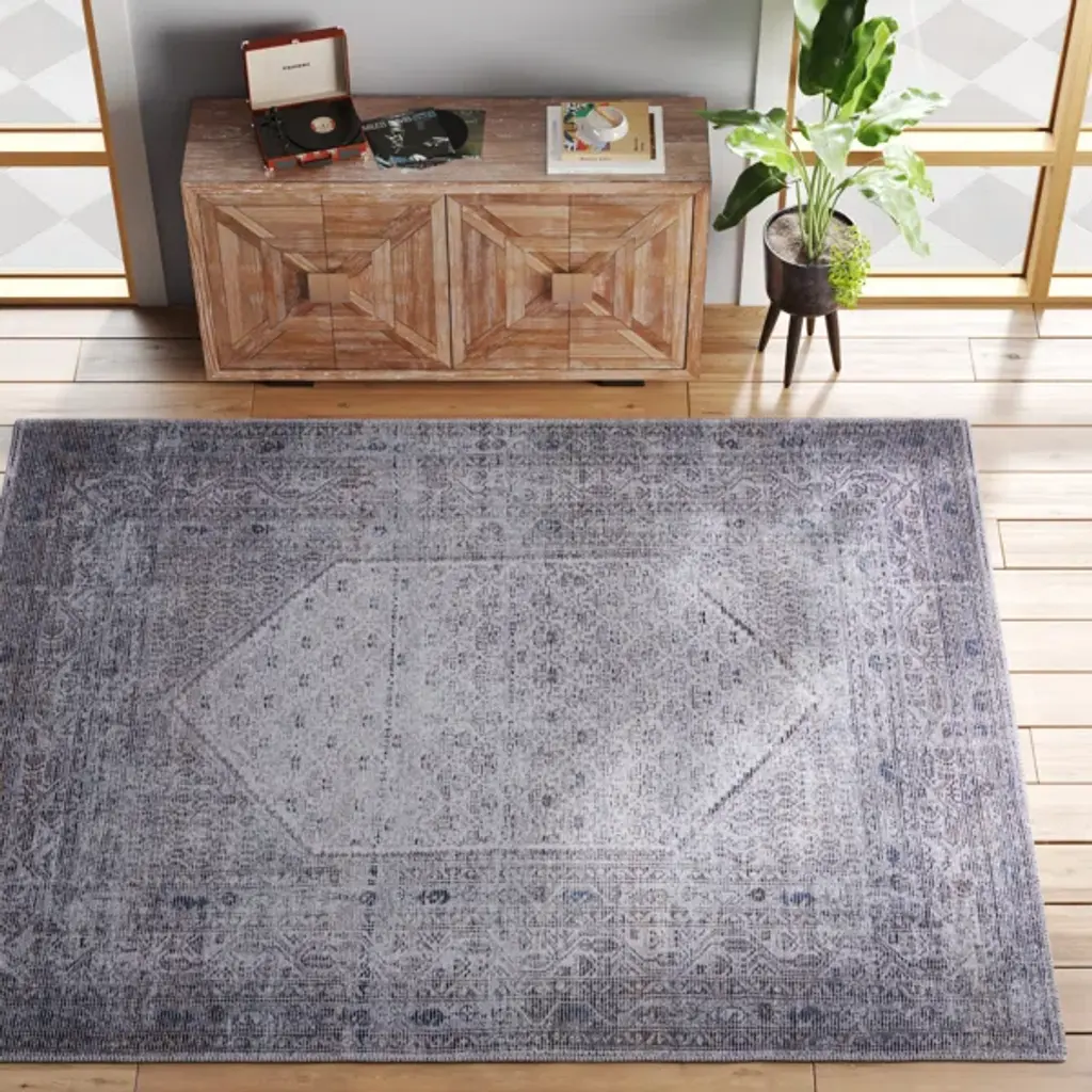 This Oriental rug features an eye-catching center medallion that draws on Persian rug designs to bring a modern boho feel to your space. It comes in faded navy and gray tones for a vintage-inspired look. Power-loomed using a blend of cotton and chenille fabrics, this indoor area rug's super-low pile height makes it easy to clean and is ideal for high-traffic areas like your living room. It's also safe to roll out overheated floors. Even though this rug has a canvas backing, we recommend pairing it with a rug pad (sold separately). Features Machine washable A vintage look at an affordable price Pet and kid friendly Stain resistant and durable If the rug contains temporary creases when first opened, reverse-roll the rug in both directions (front to back and side to side) to help remove them. If creases persist, leave the rug reversely rolled for an additional few hours. Due to the difference of monitor colors, some rug colors may vary slightly. We try to represent all rug colors as accurately as possible.