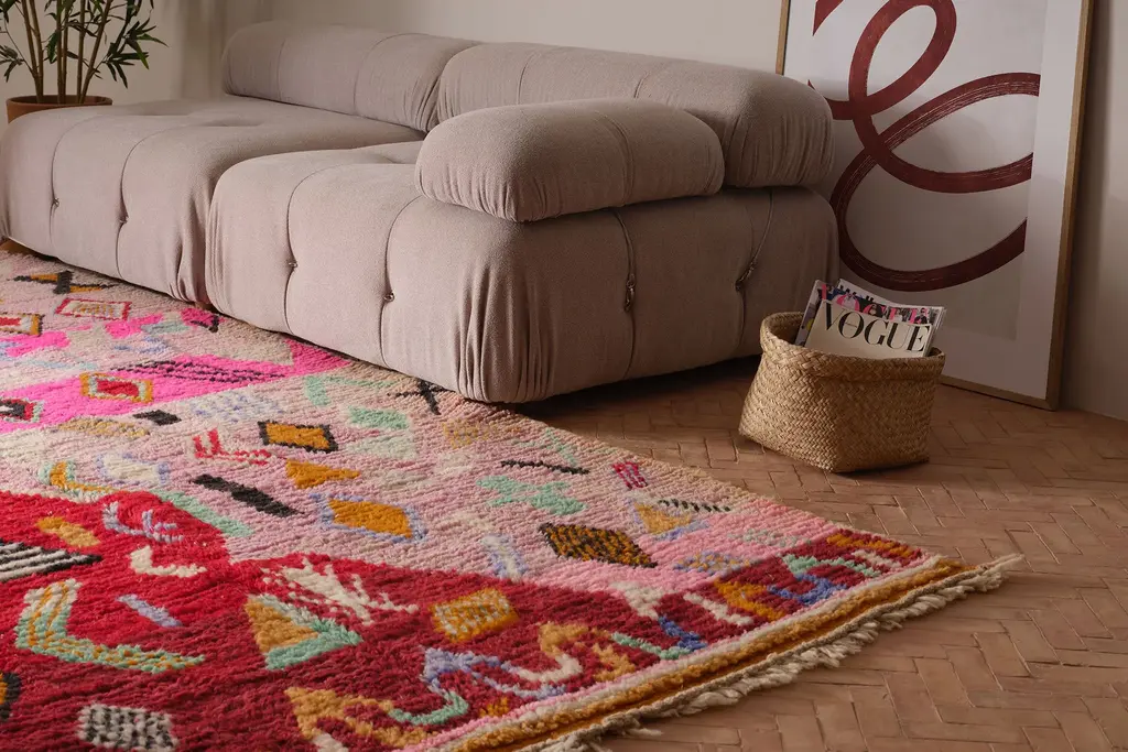 Our Moroccan pieces are each one-of-a-kind. Much of our collection was woven between 30 and 100 years ago, and curated by us. Other rugs in our collection are fresh off the loom and made with traditional techniques. Moroccan rugs don’t come with a key. As with any painting or poem, their motifs have many subjective interpretations. Originally made for personal use, these rugs took months to weave, documenting a shifting tide of events and emotions in the weaver’s life.
