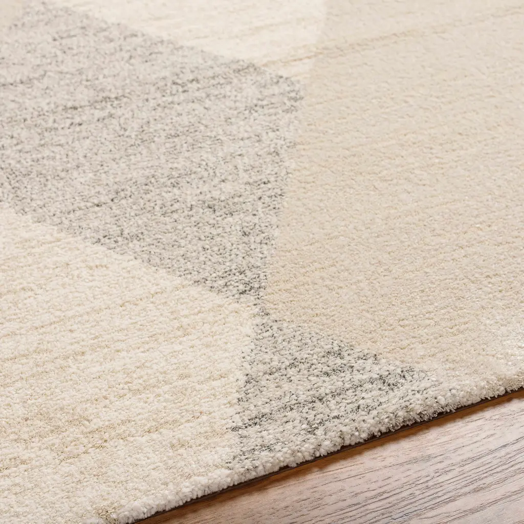 Collection: Dilys Colors: Ivory, MediumGray, LightBeige Construction: Machine Woven Material: 55% Polyester,45% Polypropylene Pile: High Pile Pile Height: 0.59" Styles: Contemporary Made In: Turkey Thickness: 1.3" Price Range: $$$$$ (Affordable)