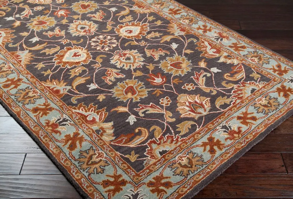 Hand-tufted wool in striking transitional patterns comprise the Aurora Collection. The bold medallions of floral patterns within the collection are inspired by traditional pattern and have been updated with dramatic color and pattern scale. A rug pad is recommended to keep this securely in place.