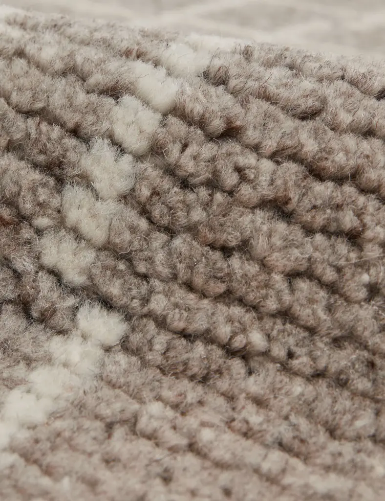 Our Diora rug brings a chic air to any surroundings. The wool pile is hand-knotted with an organic grid that strikes a modern tone with timeless appeal. In a grounding neutral palette, this Moroccan-style rug is a versatile addition to curated interiors.