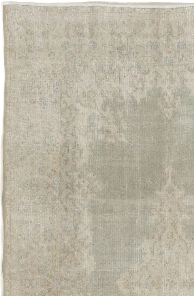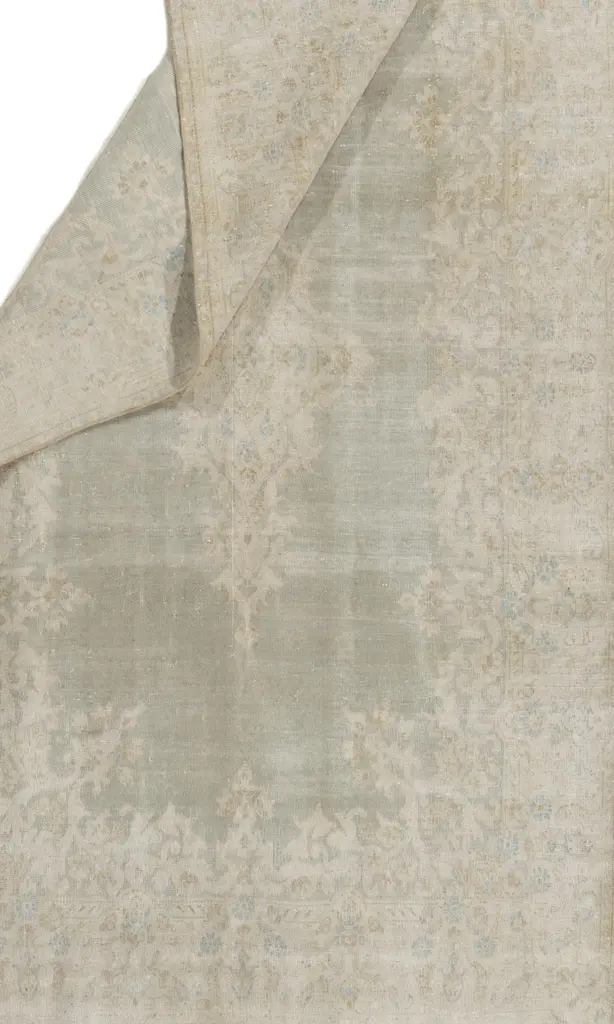 Kerman rugs, the most imaginative of all antique Persian urban rugs. Kerman city is the seat of Kerman province in SE Persia and is situated about 2000 feet in elevation. Weaving has been carried out continuously since about 1600 with a semi-hiatus in the later 18th century. The 19th century revival was strong and the antique Persian rugs from there enjoy a considerable reputation. Colors: pale gray/ivory/pale blue/greens/taupe.