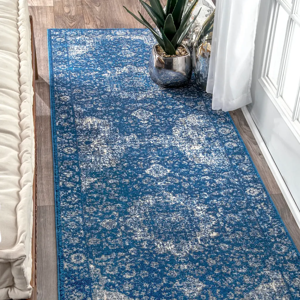 Distressed Persian Rug | Dark Blue - 2' 6" X 10'