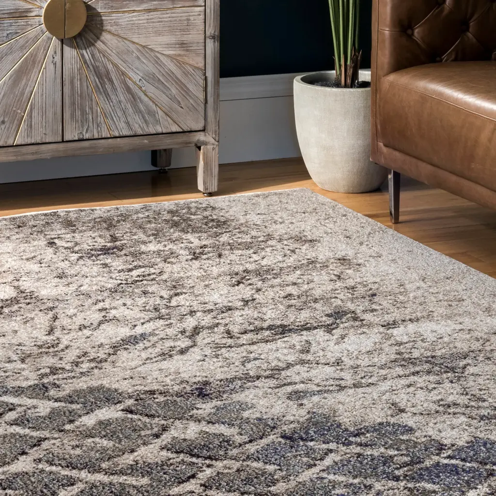 Distressed Trellis Rug | Grey - 4' X 6'