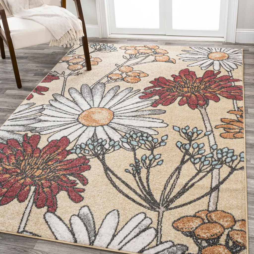 Dizi Modern Botanical Wildflower Area Rug - Yellow / 4 X 6