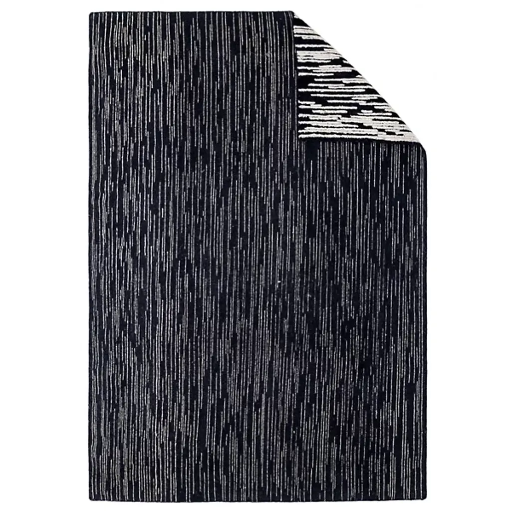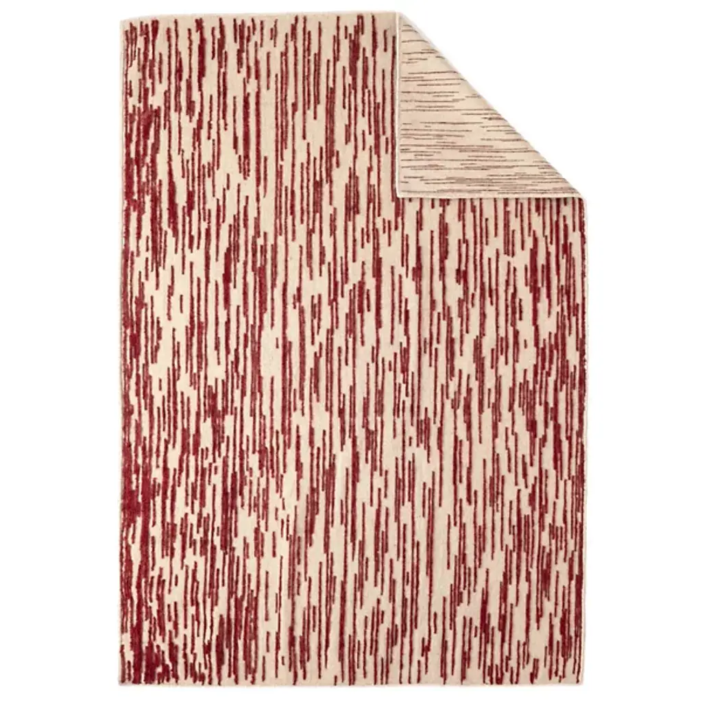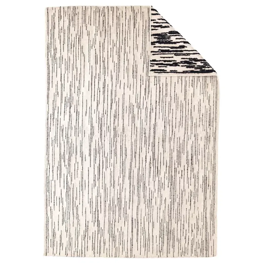 Translating to double face in Spanish, Doblecara Reversible Area Rug from Nanimarquina transforms according to the aesthetic needs of the room with a delicate and bold presentation of lines. Designer Ronan Bouroullec brings a geometric-based approach to design. Here, Bouroullec uses gentle linear strokes to guide the eye from one side of the rug to the other. These strokes are hand-knotted and loomed by artisans using hand-spun Afghan wool. One side of the rug presents a linear pattern with a graphic quality, while the other side offers a softer take. Both sides enrich the space in their look and comfortable feel.
