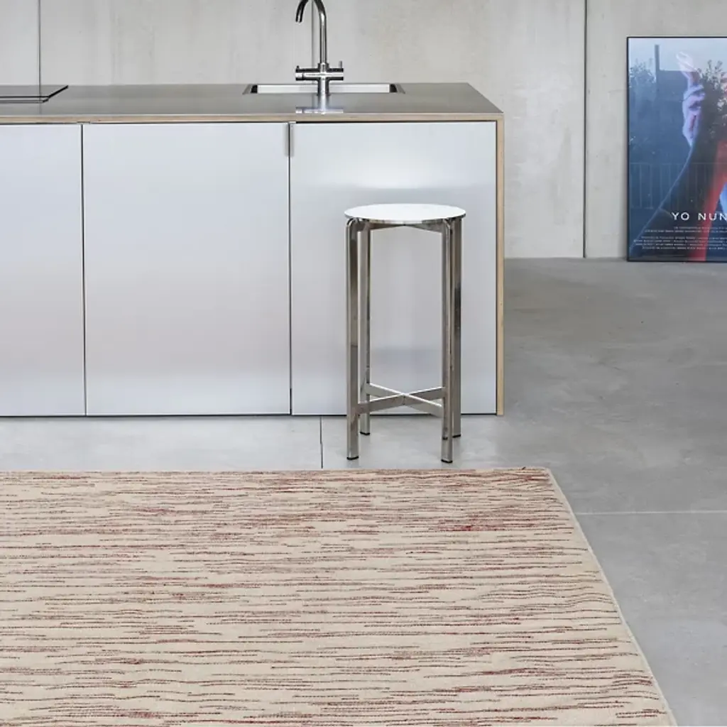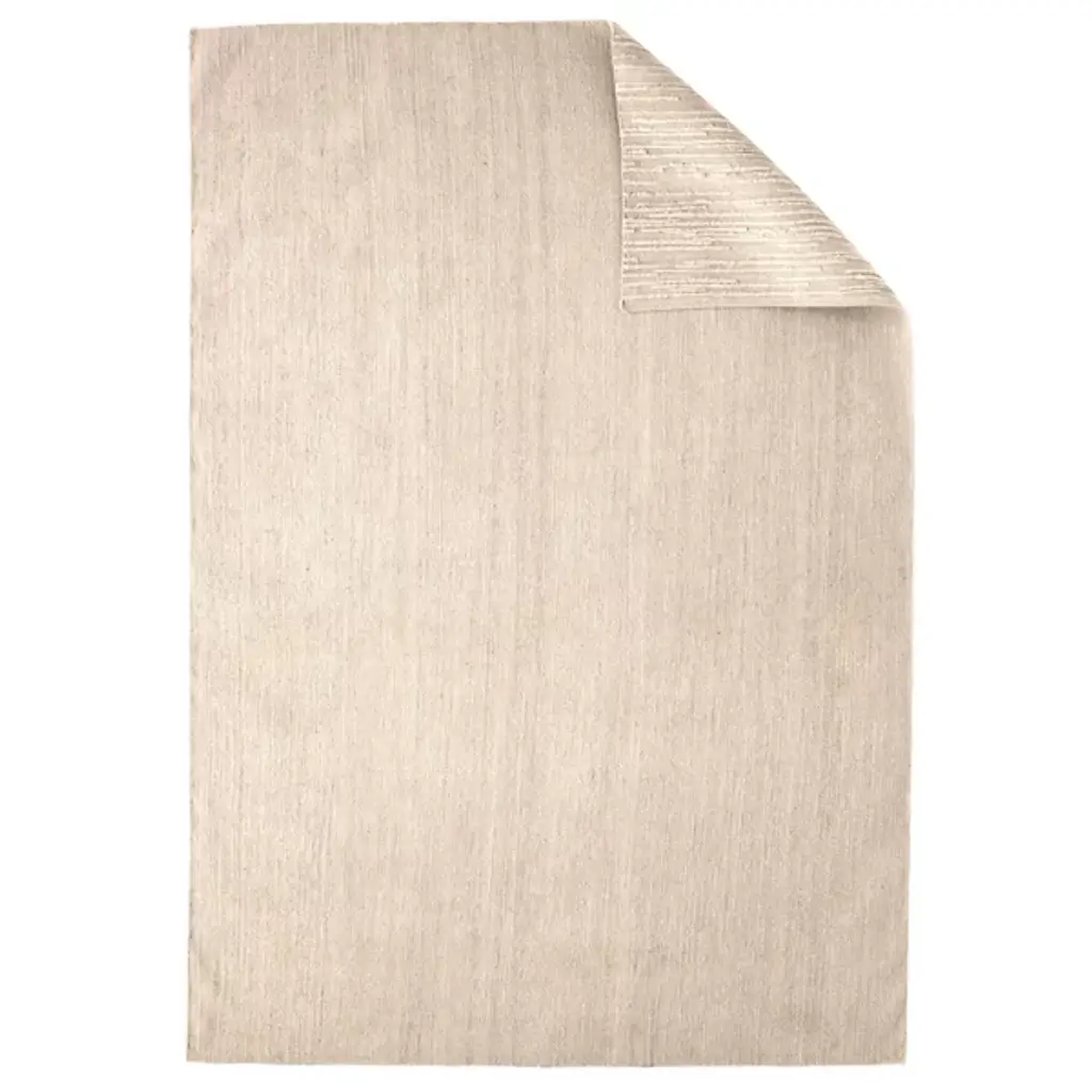 Translating to double face in Spanish, Doblecara Reversible Area Rug from Nanimarquina transforms according to the aesthetic needs of the room with a delicate and bold presentation of lines. Designer Ronan Bouroullec brings a geometric-based approach to design. Here, Bouroullec uses gentle linear strokes to guide the eye from one side of the rug to the other. These strokes are hand-knotted and loomed by artisans using hand-spun Afghan wool. One side of the rug presents a linear pattern with a graphic quality, while the other side offers a softer take. Both sides enrich the space in their look and comfortable feel.